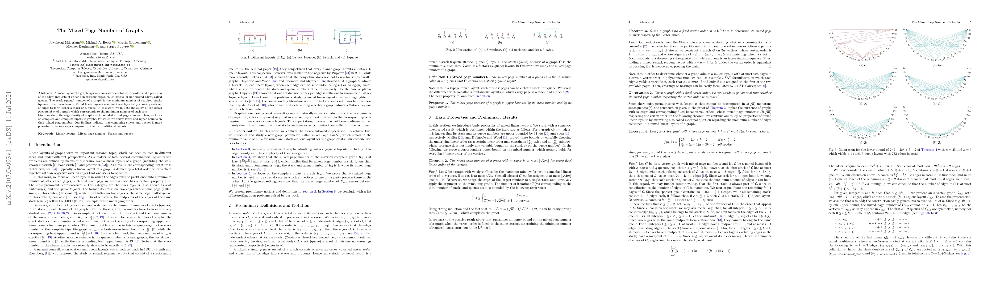 This paper initiates the study of the mixed page number of graphs, which measures the minimum number of sets required to arrange edges as either stacks or queues in a linear layout. The authors explore the edge density of graphs with bounded mixed page number and derive bounds for complete and complete bipartite graphs, showing that combining stacks and queues is more effective than traditional layouts.