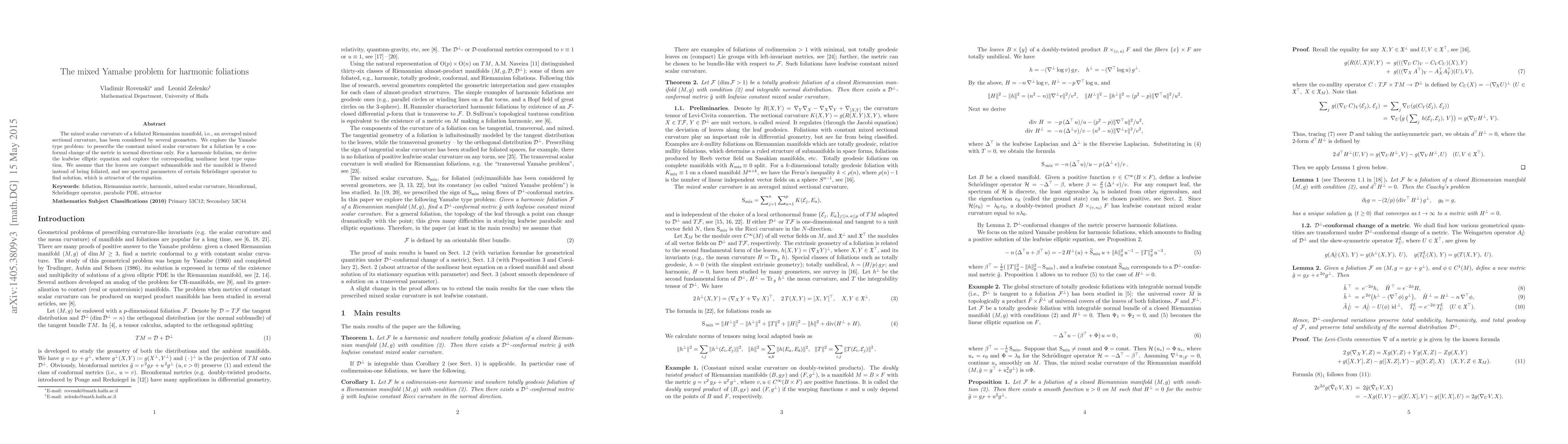 This paper investigates the mixed Yamabe problem for harmonic foliations, focusing on prescribing constant mixed scalar curvature via conformal changes in normal directions. It derives a leafwise elliptic equation and a nonlinear heat equation, utilizing spectral parameters of a Schrödinger operator to find an attractor solution.
