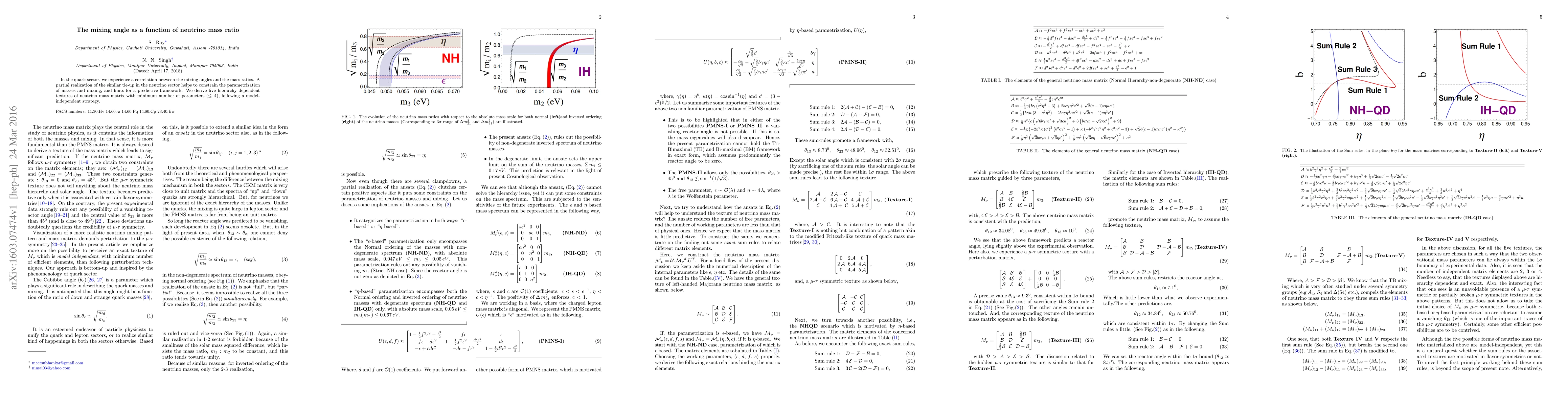 In the quark sector, we experience a correlation between the mixing angles and the mass ratios. A partial realization of the similar tie-up in the neutrino sector helps to constrain the parametrization of masses and mixing, and hints for a predictive framework. We derive five hierarchy dependent textures of neutrino mass matrix with minimum number of parameters ($\leq\,4$), following a model-independent strategy.