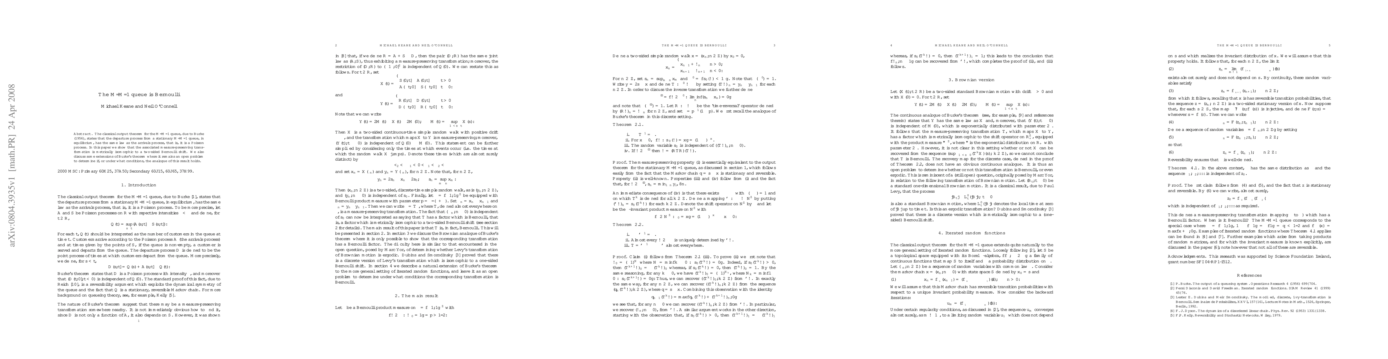 This paper demonstrates that the output process of a stationary M/M/1 queue is metrically isomorphic to a two-sided Bernoulli shift, extending Burke's classical theorem. The authors also explore potential extensions of this result, noting the ongoing challenge of determining analogous conditions for other systems.