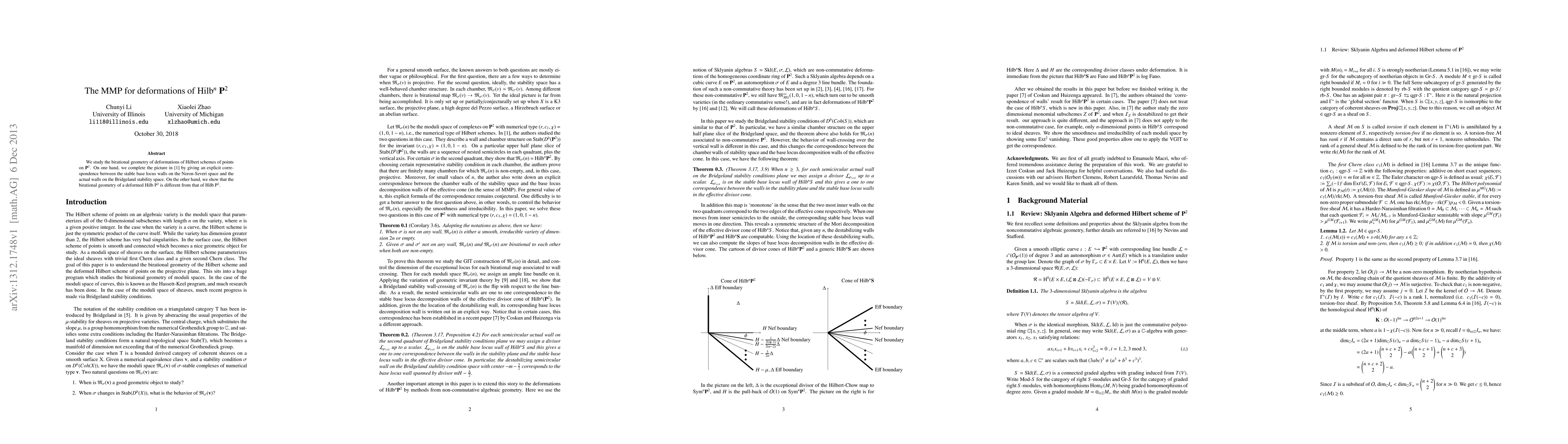 Summary: This paper explores the birational geometry of deformations of Hilbert schemes of points on the projective plane, establishing a correspondence between stable base locus walls and Bridgeland stability space walls, and demonstrating that the birational geometry of deformed Hilb P2 differs from that of Hilb P2.