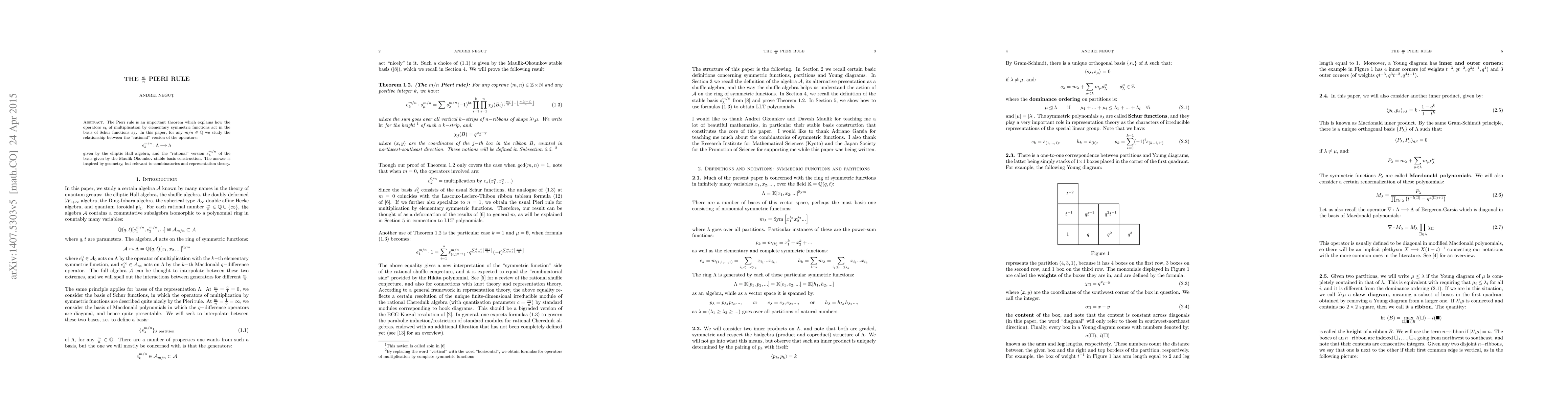 The Pieri rule is an important theorem which explains how the operators e_k of multiplication by elementary symmetric functions act in the basis of Schur functions s_lambda. In this paper, for any rational number m/n, we study the relationship between the rational version e_k^{m/n} of the operators (given by the elliptic Hall algebra) and the "rational" version s_lambda^{m/n} of the basis (given by the Maulik-Okounkov stable basis construction)