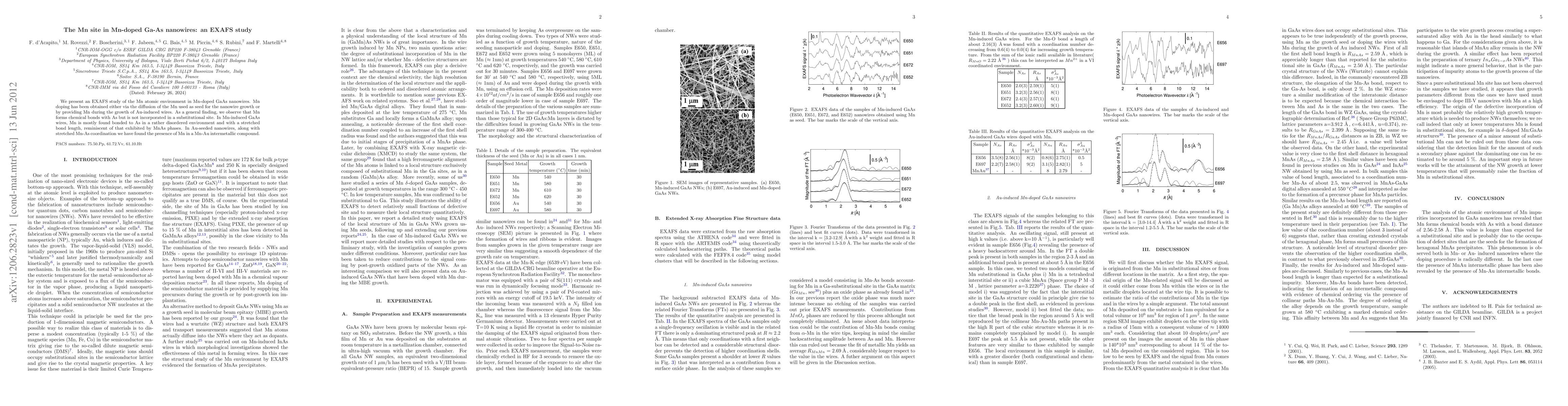 Researchers used EXAFS to study manganese in GaAs nanowires and found that it forms bonds with arsenic but is not substituted into the crystal lattice. The presence of Mn-Au intermetallic compounds was also observed in Au-seeded nanowires.