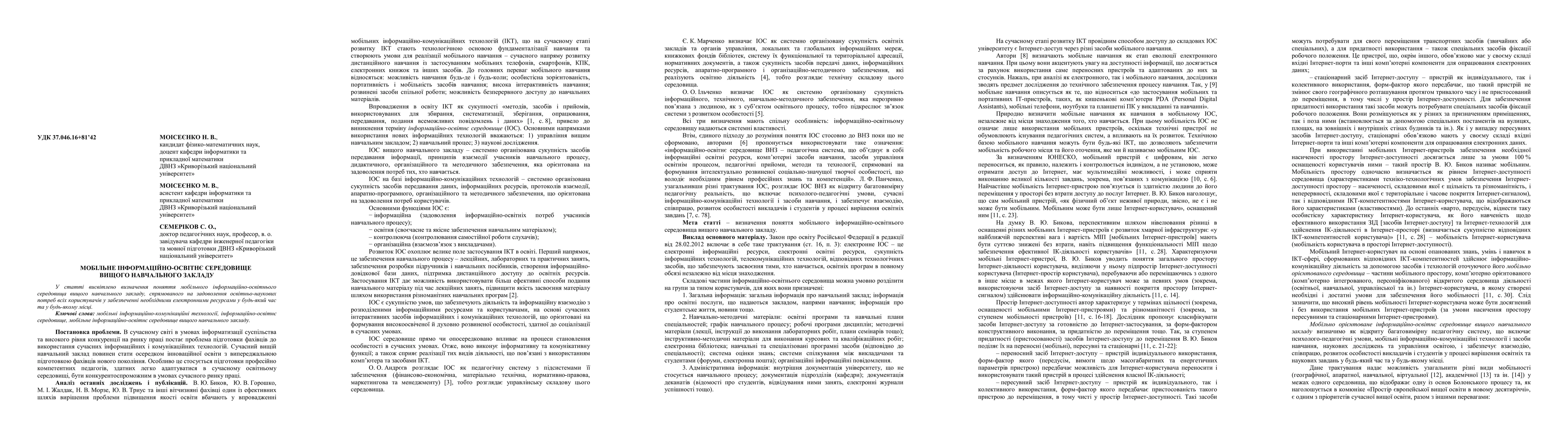 In the modern world in the conditions of informatization of society and high level of competition at the labor-market the problem of preparation of specialists appears to the use of modern information and of communication technologies. Modern higher educational establishment must become the core of innovative education with problem preparation of specialists of new generation. Especially it touches preparation professionally of competent teachers, capable easily to adapt oneself in a modern educational environment, be competitive in the conditions of modern labor-market. Purpose. To highlight the definition of mobile information and educational environment of higher educational institution. Results. Define the concept of mobile information and educational environment of a higher educational institution aiming to meet the educational and research needs of all users in providing the necessary e-resources anytime and anywhere. Conclusion. Mobile information and educational environment of a higher educational institution ensures the realization of a few preferences: effective using modern technical learning tools; attracting the best educators; implementation and supporting author's courses; ensuring purposeful development of students. In such environment every student have free access (independent from time and place) to any materials from the academic disciplines, while gaining for them the necessary practical skills, useful implements interaction, knowledge sharing, organizes continuous learning process. The creation and support of mobile information and educational environment of higher educational institution will bring the University activities to a qualitatively new level and enhance its competitiveness in modern conditions.