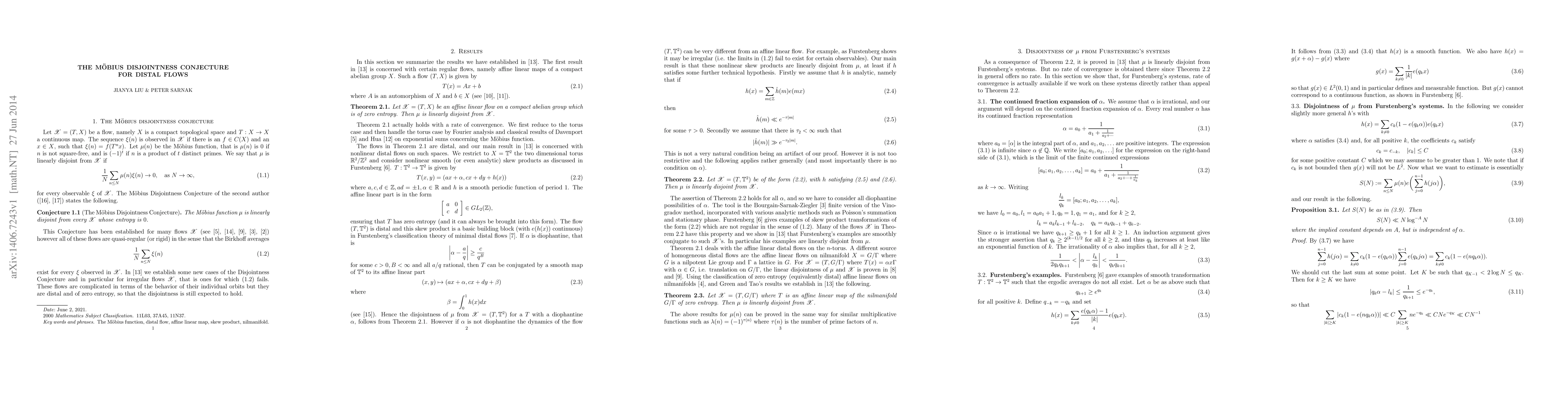 We summarize main results in our paper "The Mobius function and distal flows", and give a direct proof with rate of that the Mobius function is disjoint from Furstenberg's irregular system. This will be published in the Proceedings of the Sixth ICCM, held in Taipei in 2013.