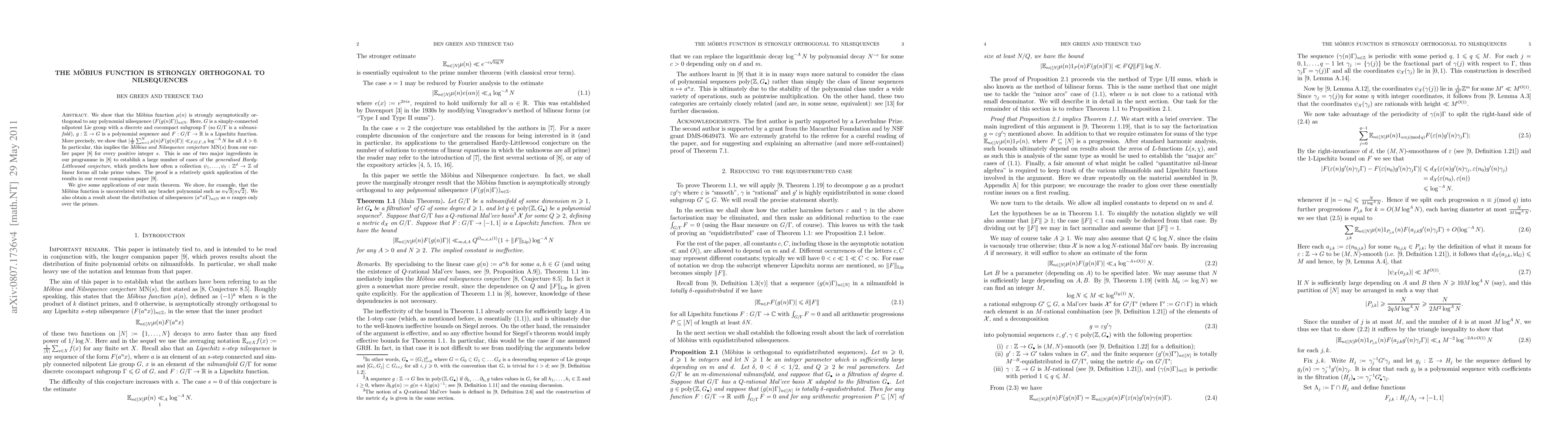 This paper demonstrates that the Mobius function is strongly orthogonal to polynomial nilsequences, showing that the inner product is bounded by 1/log^A N for any A > 0. This result supports the Mobius and Nilsequence conjecture and is a key step towards proving numerous cases of the generalised Hardy-Littlewood conjecture.