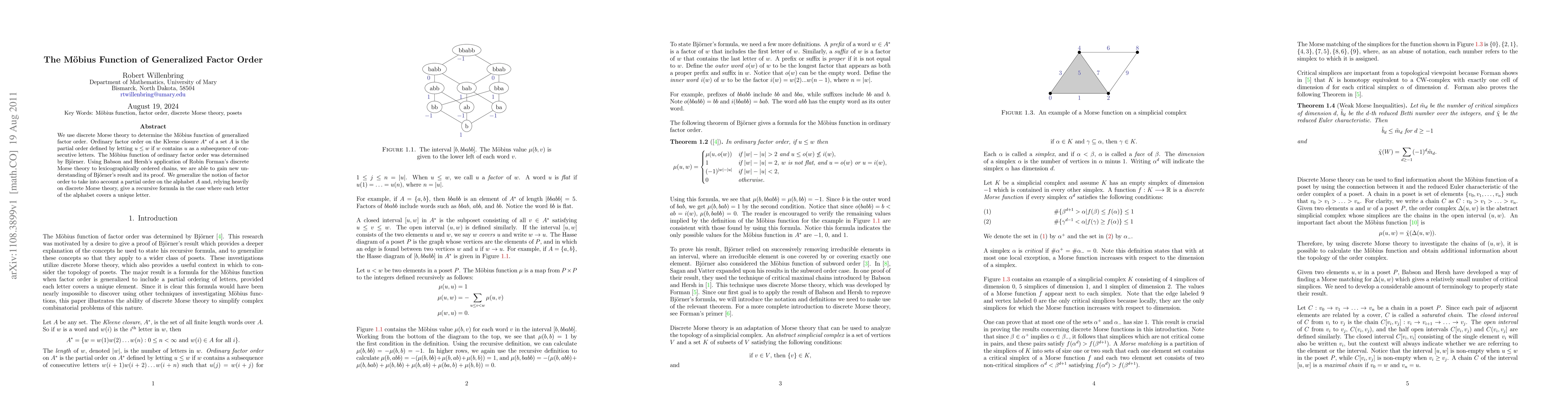 We use discrete Morse theory to determine the M\"obius function of generalized factor order. Ordinary factor order on the Kleene closure A* of a set A is the partial order defined by letting u\leq w if w contains u as a subsequence of consecutive letters. The M\"obius function of ordinary factor order was determined by Bj\"orner. Using Babson and Hersh's application of Robin Forman's discrete Morse theory to lexicographically ordered chains, we are able to gain new understanding of Bj\"orner's result and its proof. We generalize the notion of factor order to take into account a partial order on the alphabet A and, relying heavily on discrete Morse theory, give a recursive formula in the case where each letter of the alphabet covers a unique letter.