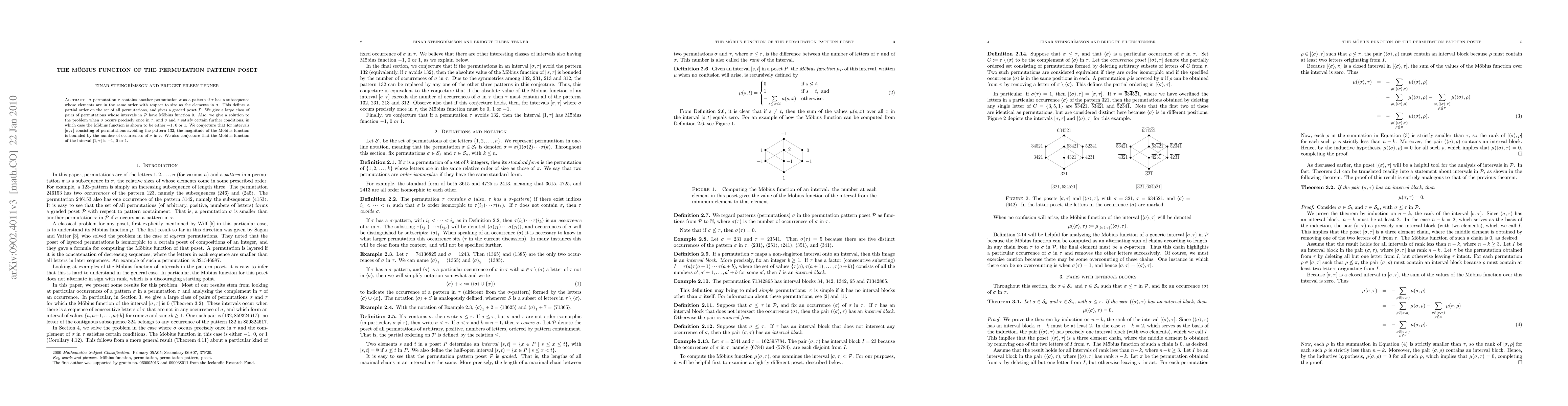 The paper introduces methods for computing the Mobius function for intervals in the permutation pattern poset, presenting a detailed analysis of pairs of permutations with specific properties.