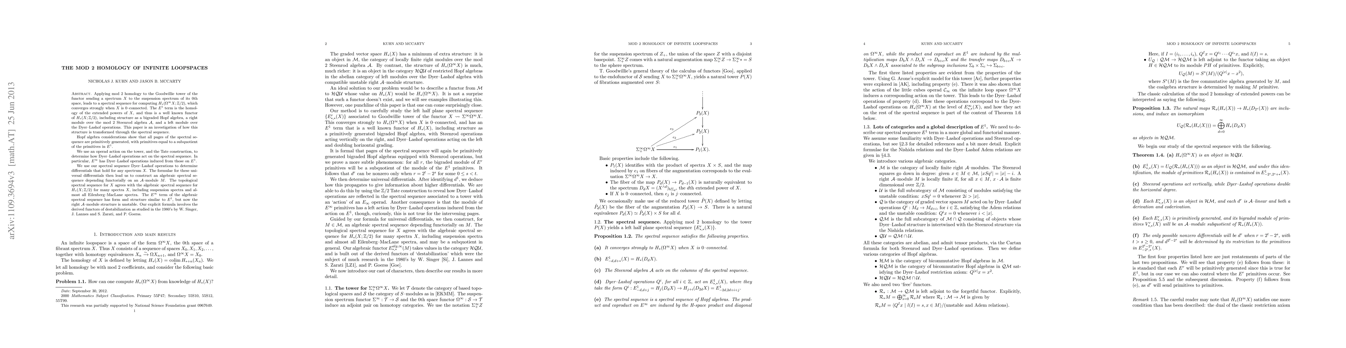 This research paper studies the mod 2 homology of infinite loopspaces using a spectral sequence that converges to the homology of the 0th space. The study reveals universal differentials for any spectrum X and leads to an algebraic spectral sequence depending functorially on A-modules, providing insights into the structure of homology groups.
