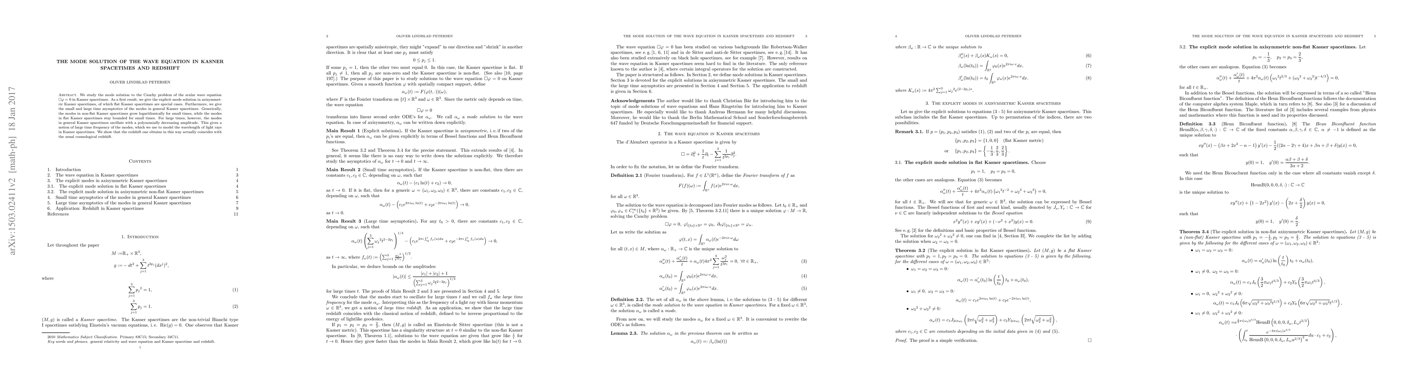 This paper provides explicit mode solutions for the scalar wave equation in Kasner spacetimes, revealing that modes grow logarithmically for small times in non-flat Kasner spacetimes while remaining bounded in flat ones. For large times, modes oscillate with a polynomially decreasing amplitude, leading to a model of light ray wavelengths and demonstrating that the resulting redshift matches the standard cosmological redshift.
