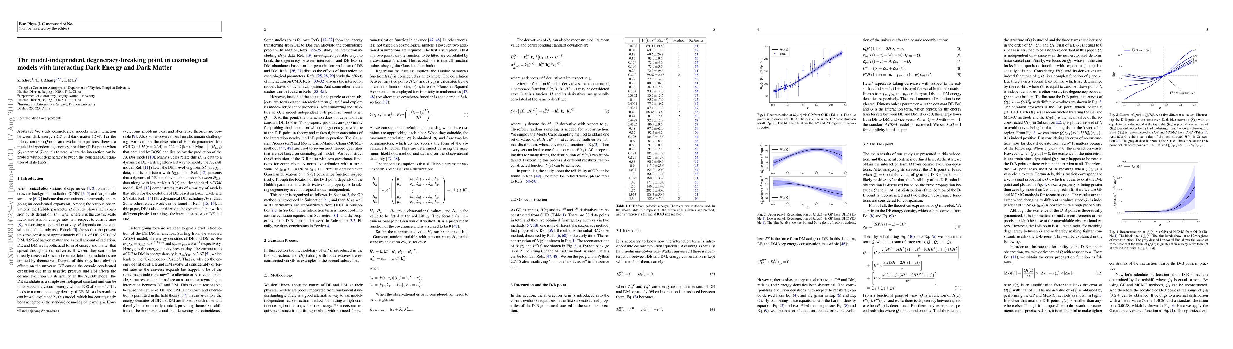 This paper investigates cosmological models featuring interactions between dark energy and dark matter, identifying a model-independent degeneracy-breaking point when a specific interaction term equals zero, allowing for interaction detection without ambiguity in the dark energy equation of state.