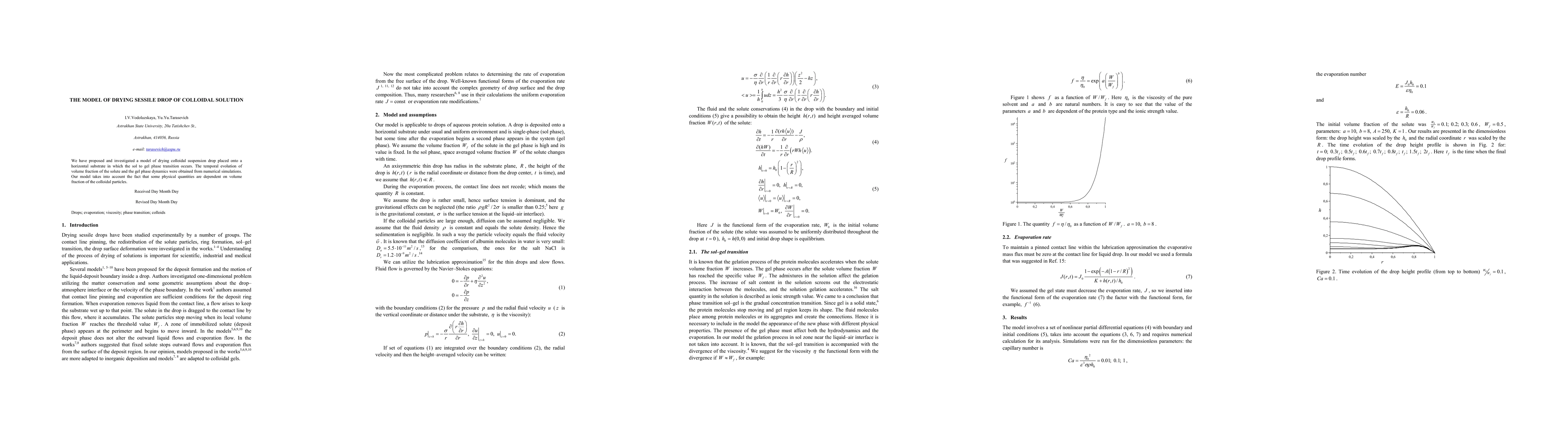 This paper proposes a model for drying a colloidal suspension drop on a substrate, focusing on the sol to gel phase transition. Numerical simulations reveal the temporal evolution of solute volume fraction and gel phase dynamics, considering the dependency of physical quantities on colloidal particle volume fraction.