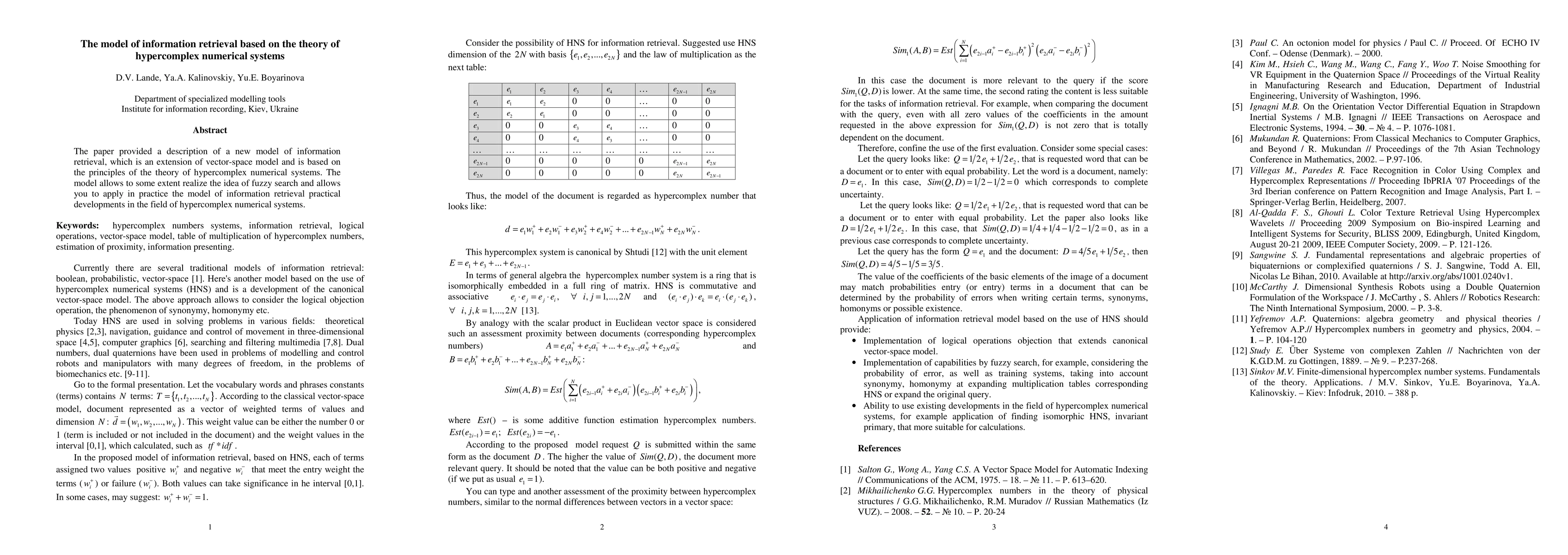 The paper introduces a novel information retrieval model, extending the vector-space model using hypercomplex numerical systems theory. This model supports fuzzy search and practical applications of hypercomplex retrieval model developments.