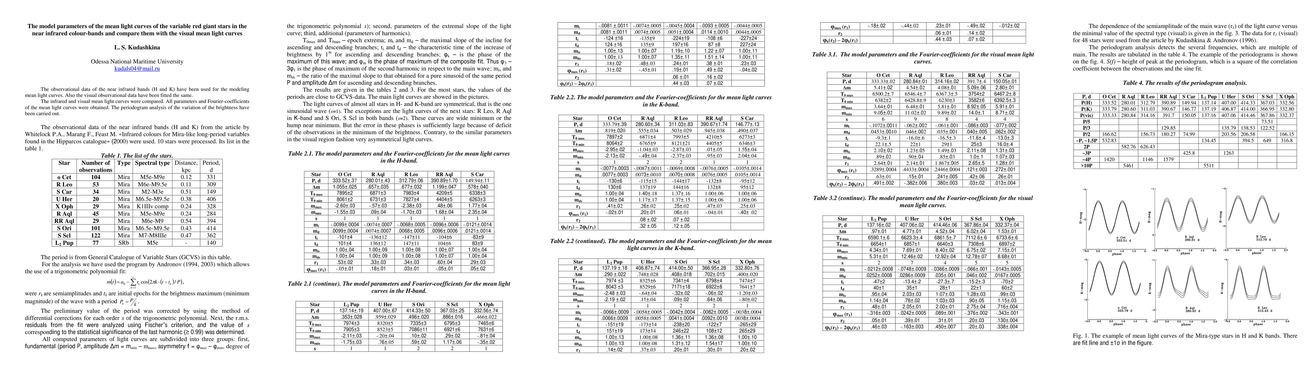 The observational data of the near infrared bands (H and K) have been used for the modeling mean light curves. Also the visual observational data have been fitted the same. The infrared and visual mean light curves were compared. All parameters and Fourier-coefficients of the mean light curves were obtained. The periodogram analysis of the variation of the brightness have been carried out.