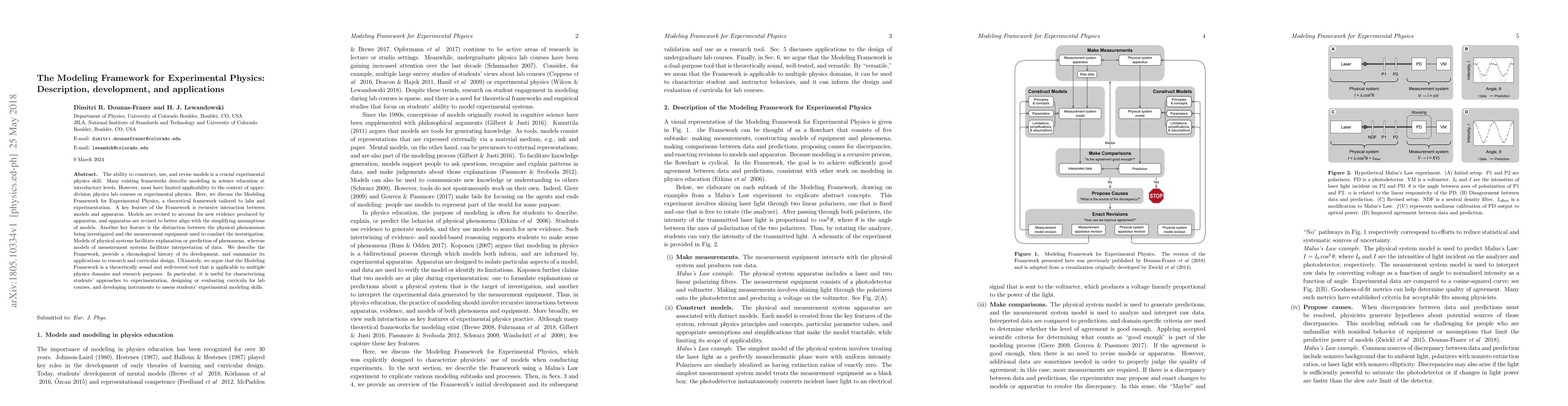 This paper introduces the Modeling Framework for Experimental Physics, a tailored theoretical framework for upper-division physics labs, emphasizing recursive interactions between models and apparatus. It highlights the distinction between physical phenomena and measurement equipment, and discusses its applications in research, curricular design, and student skill assessment.