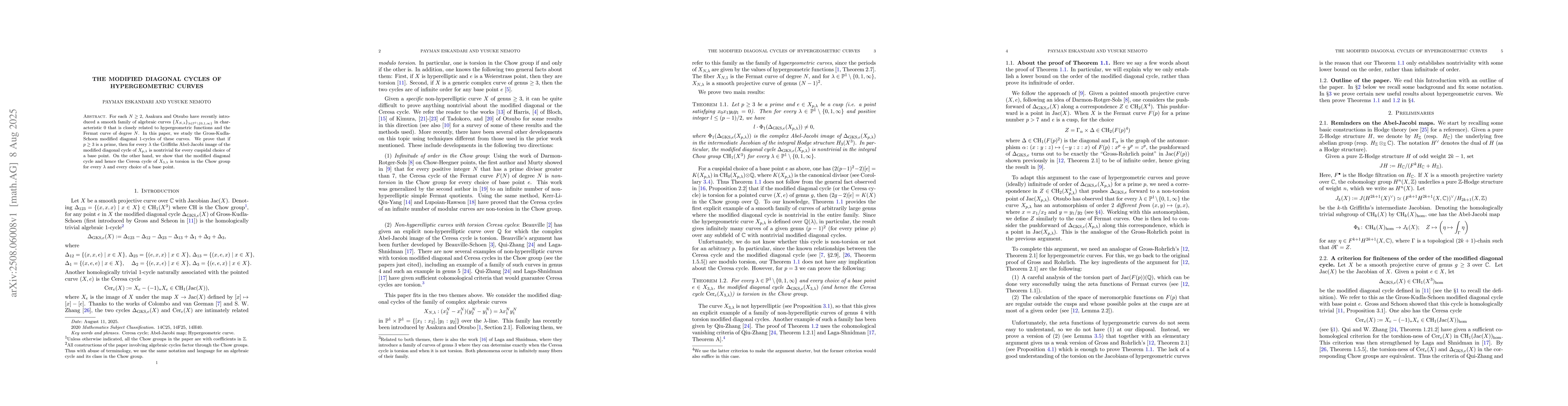 For each $N\geq 2$, Asakura and Otsubo have recently introduced a smooth family of algebraic curves $\{X_{N,\lambda}\}_{\lambda \in \mathbb{P}^1\setminus \{0, 1, \infty\}}$ in characteristic 0 that is closely related to hypergeometric functions and the Fermat curve of degree $N$. In this paper, we study the Gross-Kudla-Schoen modified diagonal 1-cycles of these curves. We prove that if $p \ge 3$ is a prime, then for every $\lambda$ the Griffiths Abel-Jacobi image of the modified diagonal cycle of $X_{p,\lambda}$ is nontrivial for every cuspidal choice of a base point. On the other hand, we show that the modified diagonal cycle and hence the Ceresa cycle of $X_{3,\lambda}$ is torsion in the Chow group for every $\lambda$ and every choice of a base point.