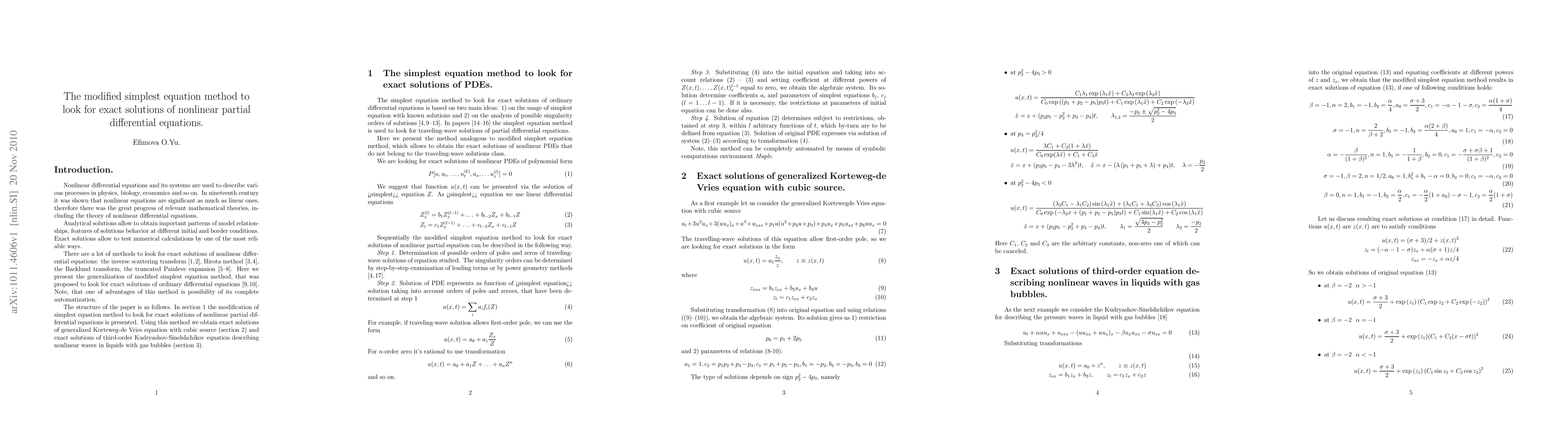 This paper presents a modified simplest equation method for finding exact solutions to nonlinear partial differential equations, demonstrating its application through exact solutions of the generalized Korteweg-de Vries equation with cubic source and the third-order Kudryashov-Sinelshchikov equation.