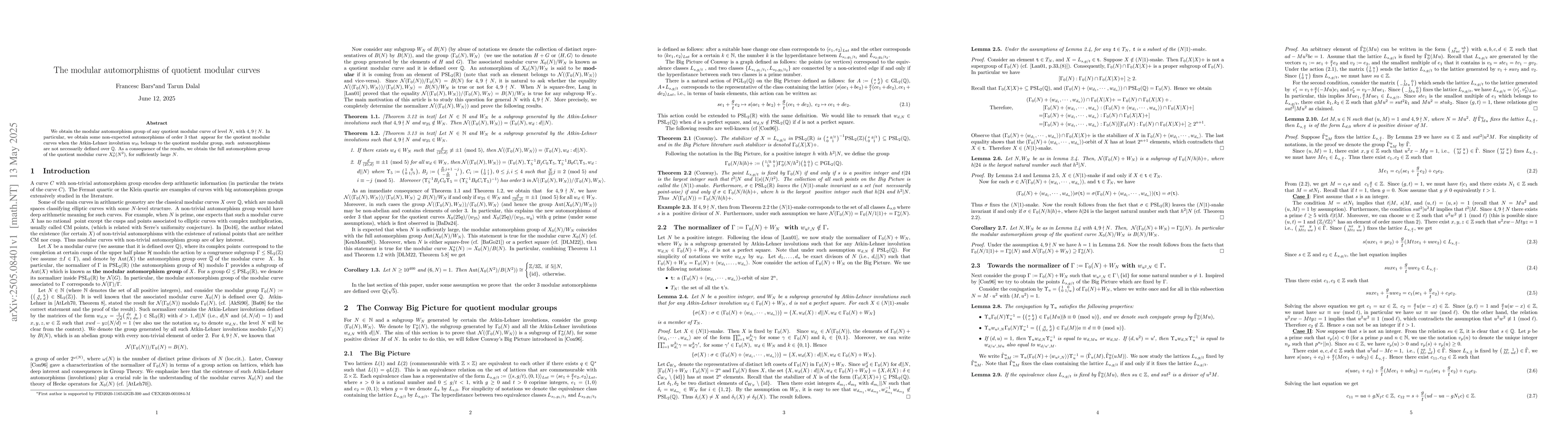 The paper presents a method to calculate the modular automorphism group of quotient modular curves under specified conditions, including the identification of non-obvious automorphisms of order 3.