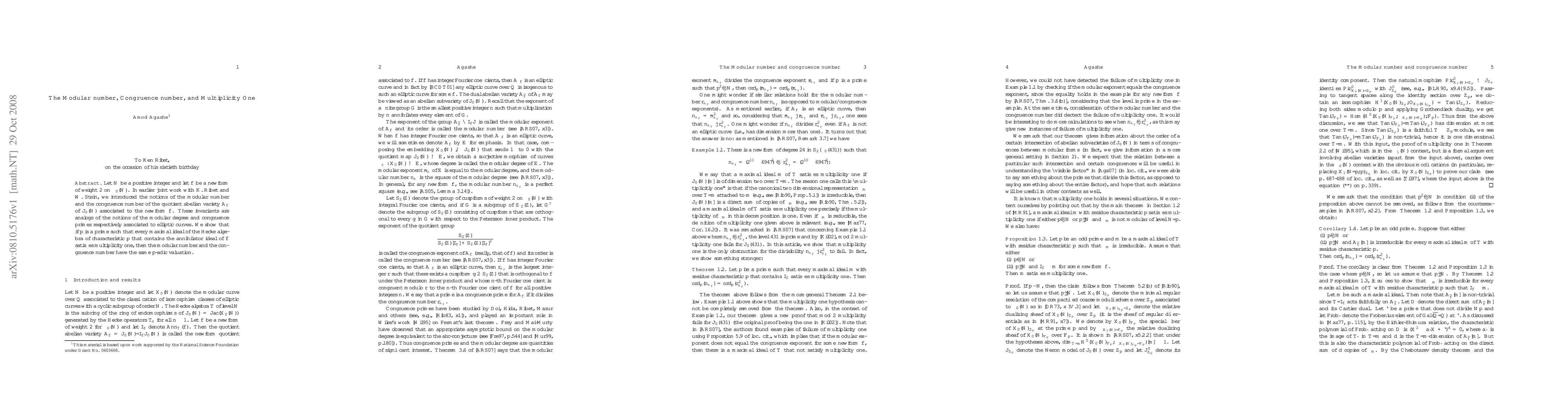 Let $N$ be a positive integer and let $f$ be a newform of weight 2 on $\Gamma_0(N)$. In earlier joint work with K. Ribet and W. Stein, we introduced the notions of the modular number and the congruence number of the quotient abelian variety $A_f$ of $J_0(N)$ associated to the newform $f$. These invariants are analogs of the notions of the modular degree and congruence primes respectively associated to elliptic curves. We show that if $p$ is a prime such that every maximal ideal of the Hecke algebra of characteristic $p$ that contains the annihilator ideal of $f$ satisfies multiplicity one, then the modular number and the congruence number have the same $p$-adic valuation.