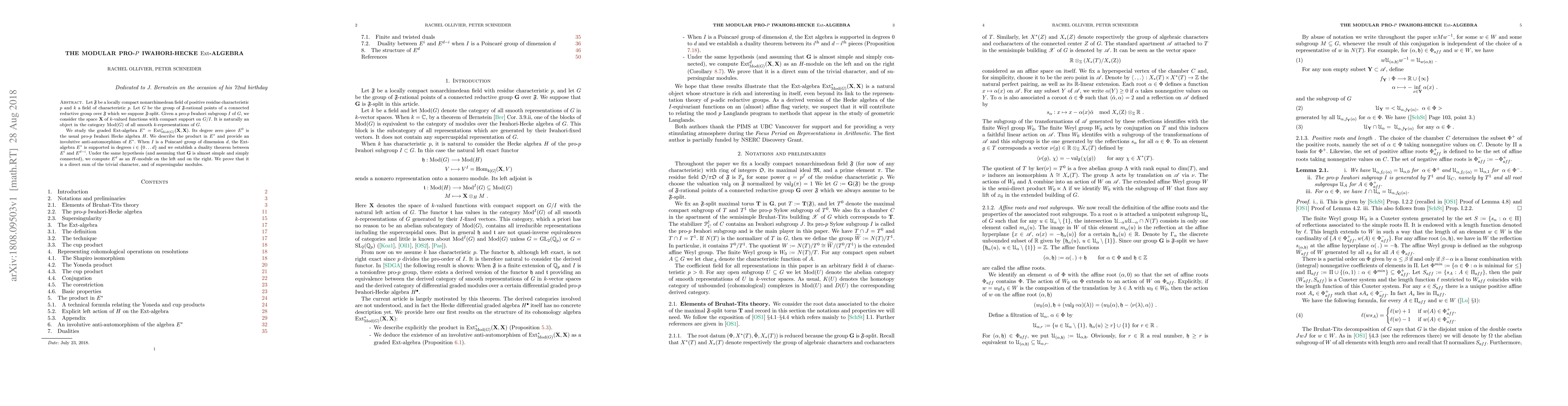 Let $\mathfrak F$ be a locally compact nonarchimedean field of positive residue characteristic $p$ and $k$ a field of characteristic $p$. Let $G$ be the group of $\mathfrak{F}$-rational points of a connected reductive group over $\mathfrak{F}$ which we suppose $\mathfrak F$-split. Given a pro-$p$ Iwahori subgroup $I$ of $G$, we consider the space $\mathbf X$ of $k$-valued functions with compact support on $G/I$. It is naturally an object in the category ${\operatorname{Mod}}{(G)}$ of all smooth $k$-representations of $G$. We study the graded Ext-algebra $E^*={\operatorname{Ext}}_{{\operatorname{Mod}}(G)}^*(\mathbf X, \mathbf X)$. Its degree zero piece $E^0$ is the usual pro-$p$ Iwahori-Hecke algebra $H$. We describe the product in $E^*$ and provide an involutive anti-automorphism of $E^*$. When $I$ is a Poincar\'e group of dimension $d$, the ${\operatorname{Ext}}$-algebra $E^*$ is supported in degrees $i\in\{0\dots d\}$ and we establish a duality theorem between $E^i$ and $E^{d-i}$. Under the same hypothesis (and assuming that $\mathbf G$ is almost simple and simply connected), we compute $E^d$ as an $H$-module on the left and on the right. We prove that it is a direct sum of the trivial character, and of supersingular modules.