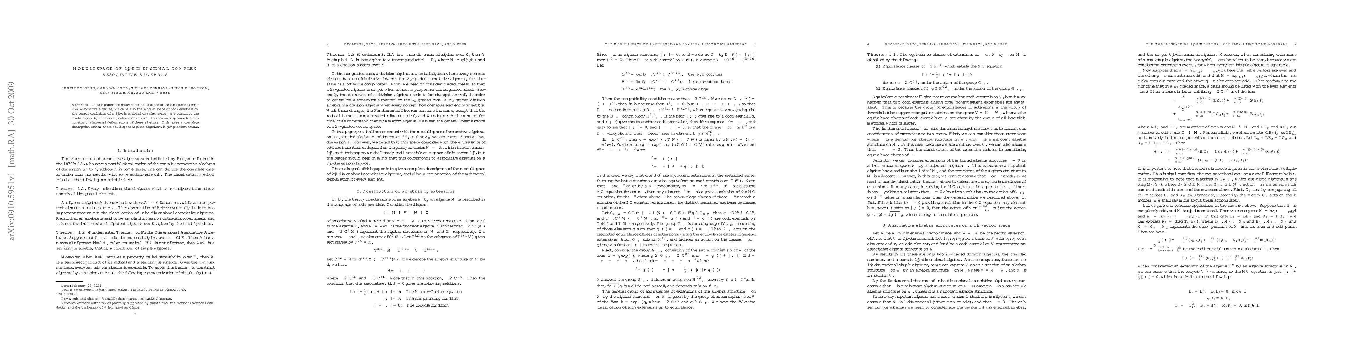 This paper describes the moduli space of 1|2-dimensional complex associative algebras, which is used to study codifferentials on tensor coalgebras in higher dimensions. The authors provide a complete description of how these spaces are glued together via jump deformations.