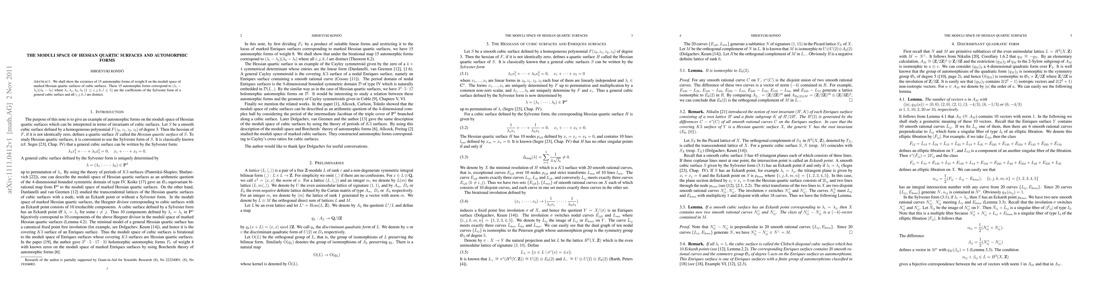Summary: The paper demonstrates the existence of 15 automorphic forms of weight 8 on the moduli space of marked Hessian quartic surfaces, linking these forms to the coefficients of the Sylvester form of general cubic surfaces. This connection provides insight into the geometric and algebraic properties of these surfaces.