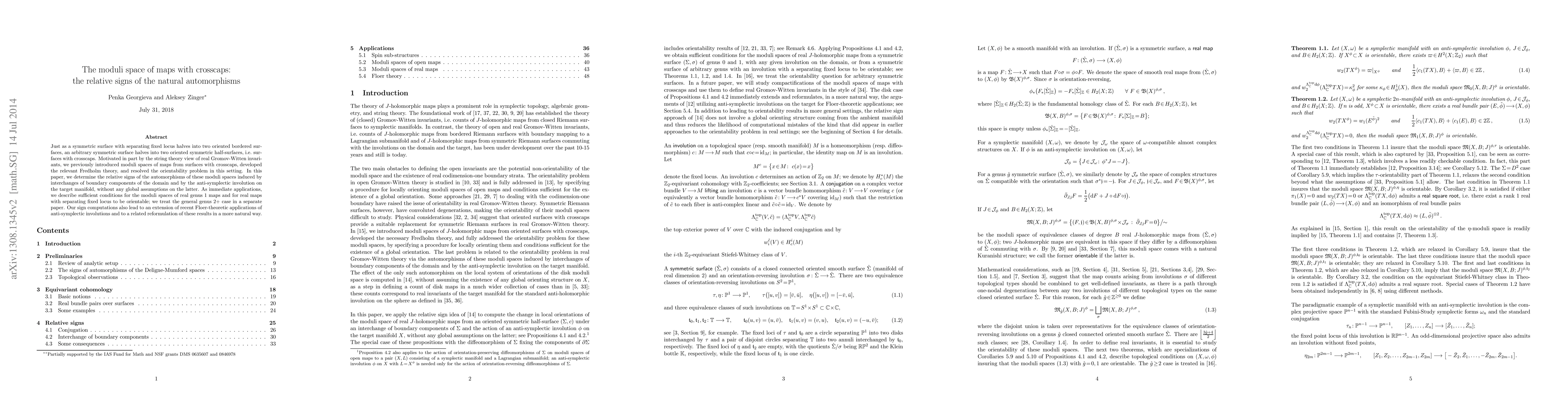 The paper introduces a method for computing the relative signs of natural automorphisms in moduli spaces of maps from symmetric surfaces with crosscaps, resolving orientability issues without global assumptions on the target manifold's anti-symplectic involution.