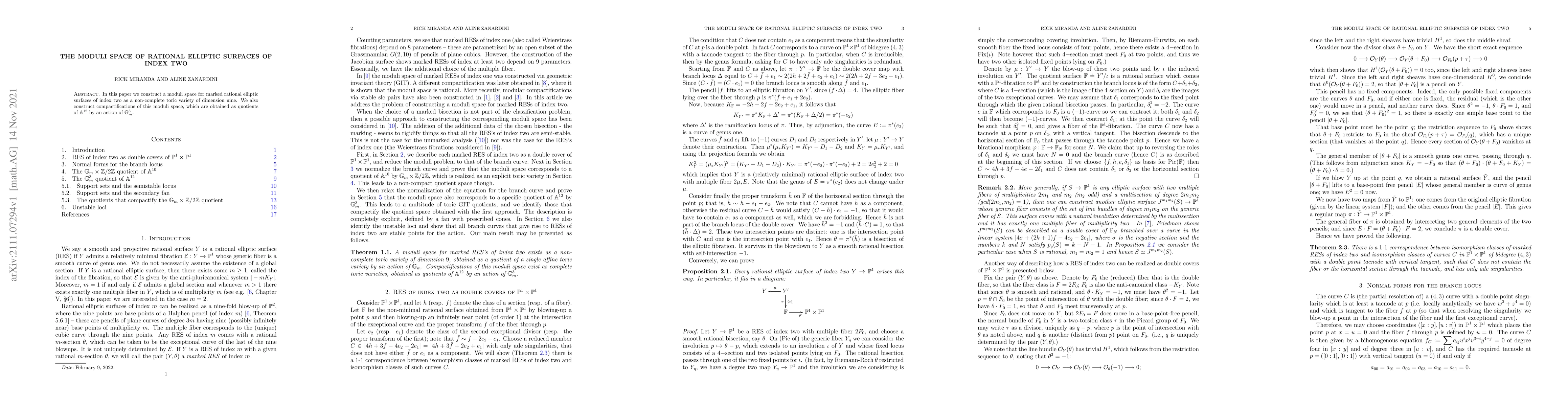 This paper constructs a moduli space for marked rational elliptic surfaces of index two as a non-complete toric variety of dimension nine. It also provides compactifications of this moduli space via quotients of $\mathbb{A}^{12}$ by an action of $\mathbb{G}_m^3$.