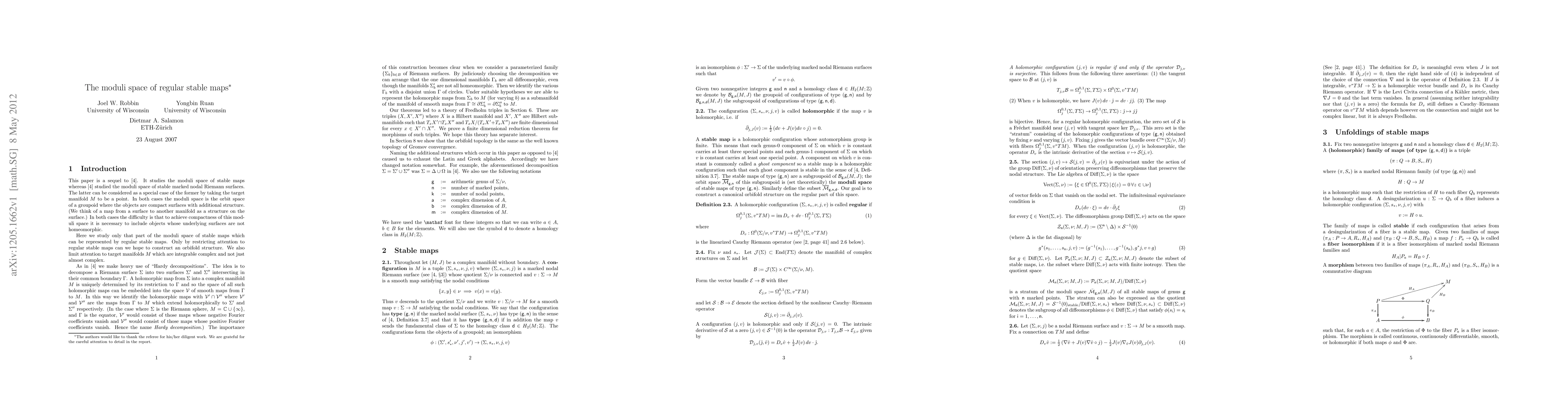 This paper demonstrates that the moduli space of regular stable maps into a complex manifold is a complex orbifold, employing differential geometry methods, specifically Hardy decompositions and Fredholm intersection theory within the loop space of the target manifold.