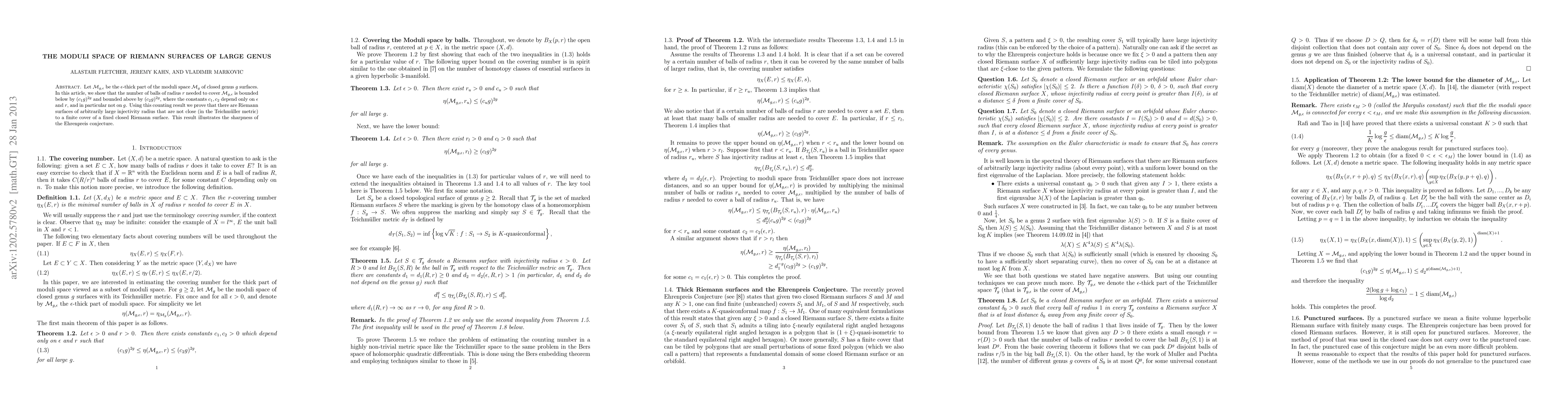 This work is novel because it uses a combination of mathematical techniques to analyze the moduli space of Riemann surfaces, and provides new insights into the properties of these surfaces.