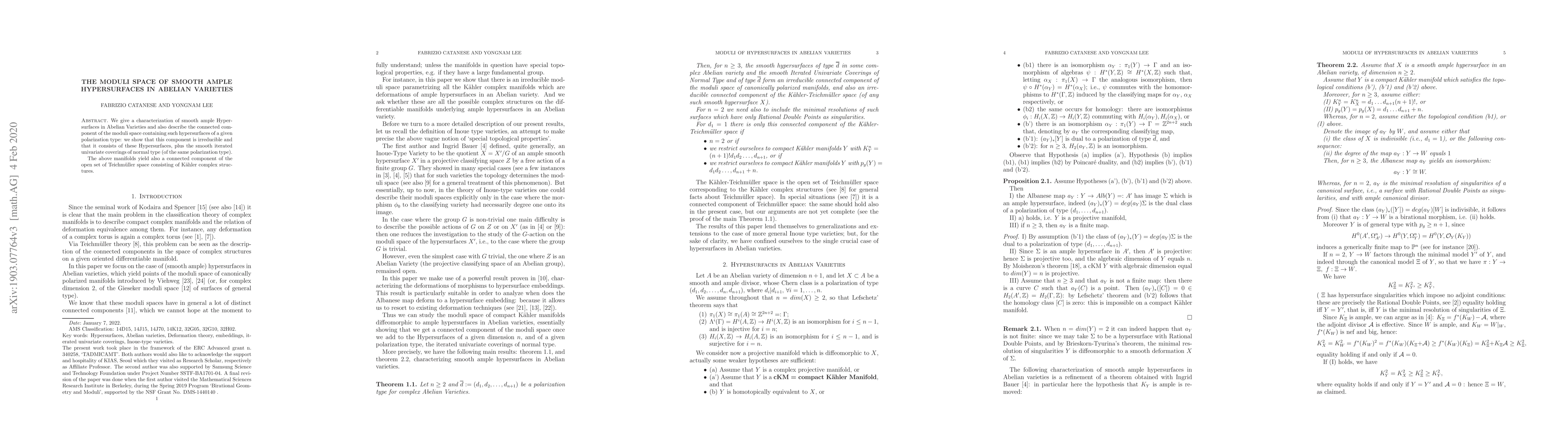 This paper characterizes smooth ample hypersurfaces in Abelian varieties and outlines an irreducible connected component of their moduli space, which includes hypersurfaces of a given polarization type and iterated univariate coverings of normal type. It also links these manifolds to a connected component of the open set of Teichmüller space with Kähler complex structures.