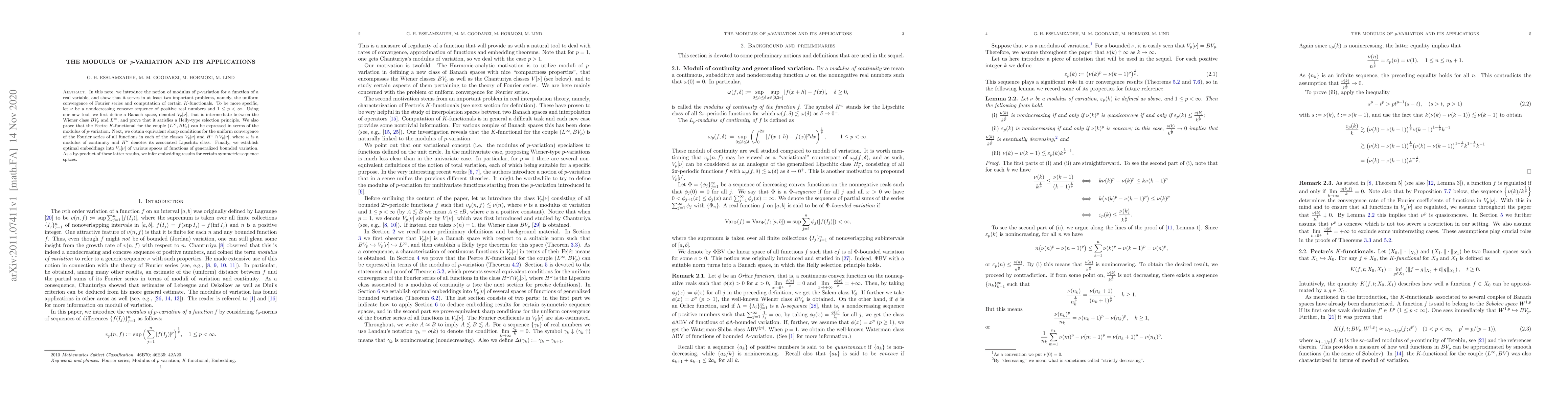 This paper introduces the modulus of $p$-variation for functions and its applications in Fourier series convergence and $K$-functionals, leading to new embeddings and results on function spaces.