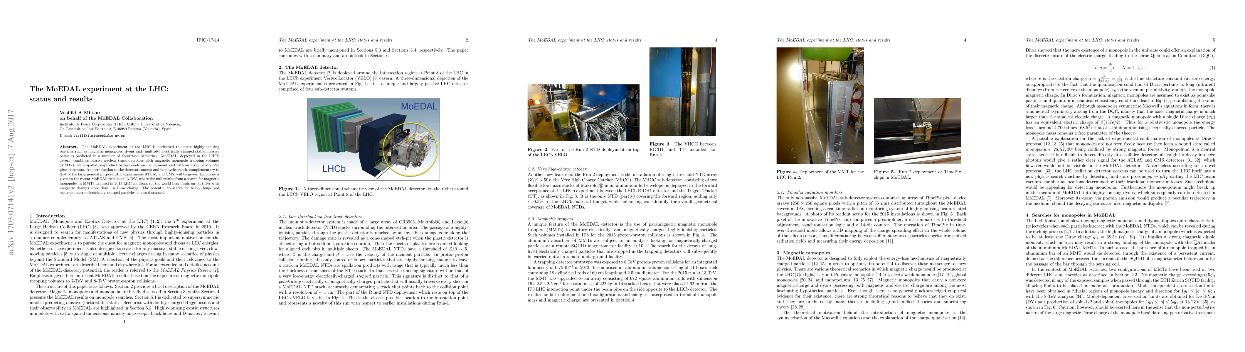 The MoEDAL experiment at the LHC aims to detect highly ionising particles like magnetic monopoles and dyons using passive nuclear track detectors and magnetic monopole trapping volumes. Recent results at 13 TeV set the best limits on particles with magnetic charges exceeding 1.5 Dirac charge, while the experiment continues to explore heavy, long-lived supersymmetric particles.