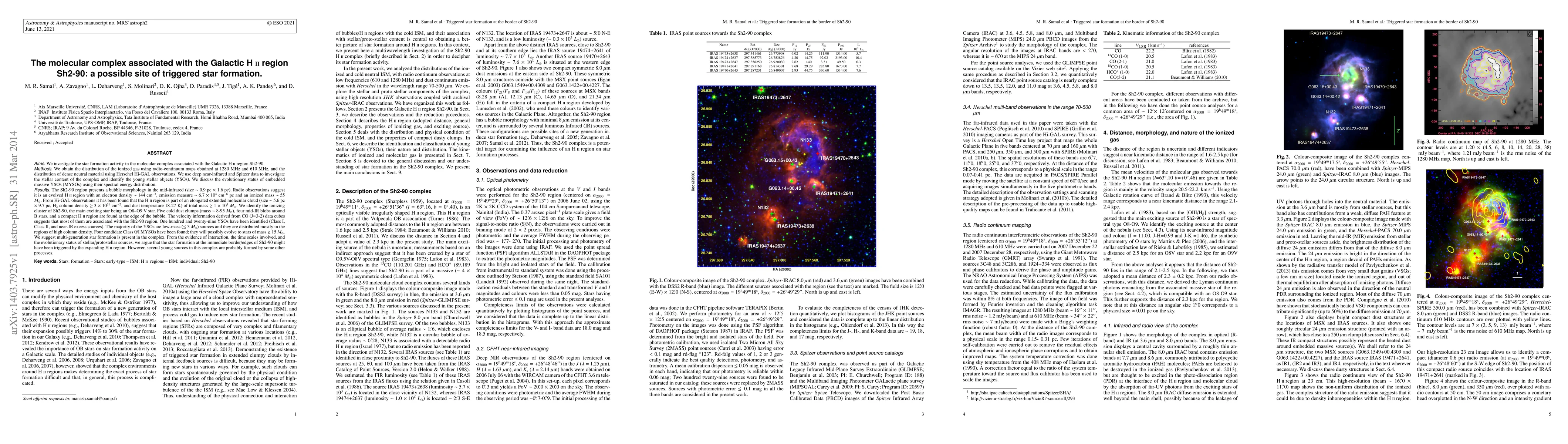 This study investigates star formation in the molecular complex linked to the Galactic HII region Sh2-90, revealing evidence of multi-generation star formation and suggesting that the expanding HII region may have triggered star formation at its edges. The analysis combines radio, infrared, and CO data to identify young stellar objects and propose a mechanism for their formation.