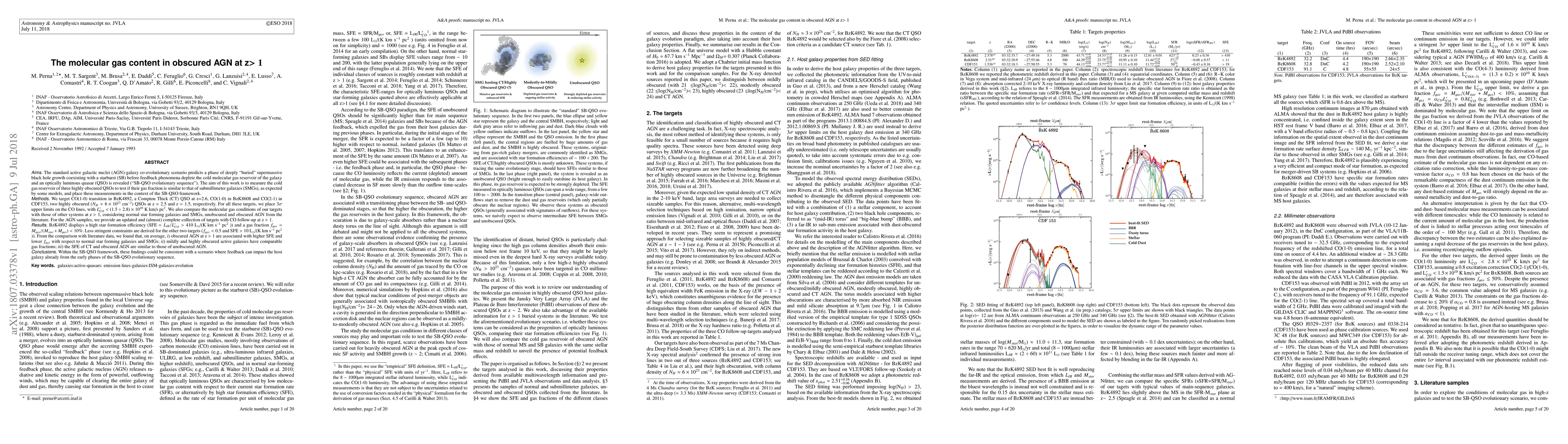 The standard AGN-galaxy co-evolutionary scenario predicts a phase of deeply buried supermassive black hole growth coexisting with a starburst (SB) before feedback phenomena deplete the cold molecular gas reservoir of the galaxy and an optically luminous QSO is revealed ('SB-QSO evolutionary sequence'). The aim of this work is to measure the cold gas reservoir of three highly obscured QSOs to test if their gas fraction is similar to that of sub-millimeter galaxies (SMGs), as expected by some models, and place these measurements in the context of the SB-QSO framework. We target CO(1-0) transition in BzK4892, a Compton Thick (CT) QSO at z=2.6, CO(1-0) in BzK8608 and CO(2-1) in CDF153, two highly obscured QSOs at z=2.5 and z=1.5, respectively. For all these targets, we place 3$\sigma$ upper limits on the CO, with $L'_{CO} < (1.5\div 2.8)\times 10^{10}$ K km/s pc$^2$. We also compare the molecular gas conditions of our targets with those of other systems at z>1, considering normal star forming galaxies and SMGs, unobscured and obscured AGN from the literature. For the AGN samples, we provide an updated and (almost) complete collection of targets with CO follow-up. BzK4892 displays a high star formation efficiency (SFE$=L_{IR}/L'_{CO}>410$ L$_{\odot}$/(K km s$^{-1}$ pc$^2$)) and a gas fraction $f_{gas}<0.1$. Less stringent constraints are derived for the other two targets ($f_{gas}<0.5$ and SFE$>10$). From the comparison with literature data, we found that a) obscured AGN at z>1 are associated with higher SFE and lower $f_{gas}$ with respect to star forming galaxies; b) mildly and highly obscured active galaxies have comparable gas fractions; c) the SFE of CT and obscured AGN are similar to those of unobscured AGN. Within the SB-QSO framework, these findings could be consistent with a scenario where feedback can impact the host galaxy already from the early phases of the SB-QSO sequence.