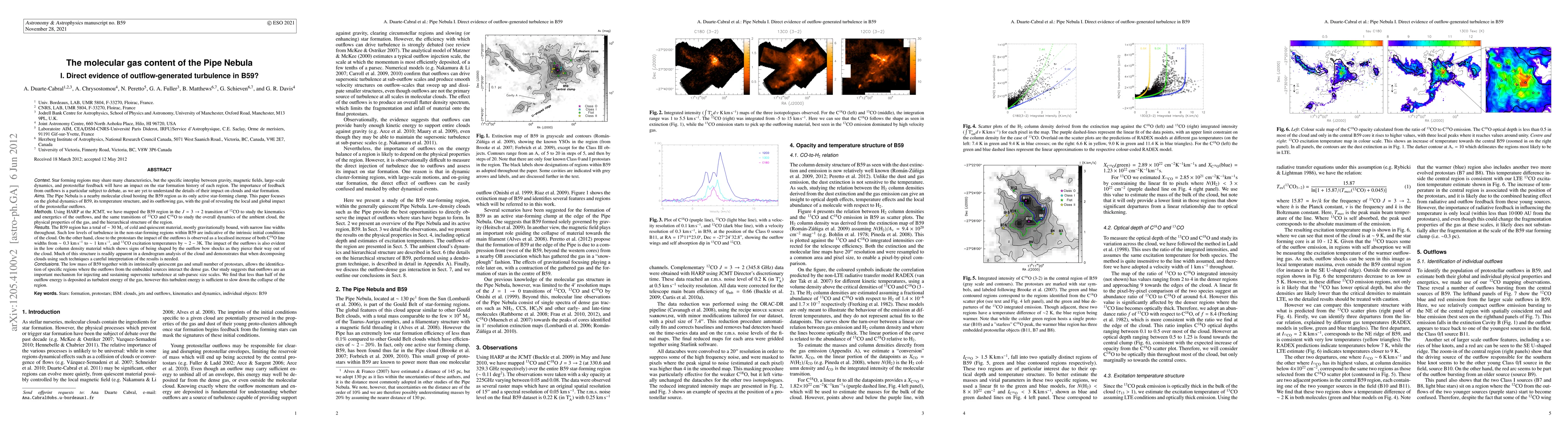 The Pipe Nebula is a molecular cloud hosting the B59 region as its only active star-forming clump. While the particular importance of outflows in active star forming regions is subject of debate, the quiet nature of the gas in B59 makes it a good site to directly see the impact of protostellar feedback on the quiescent dense gas. Using HARP at the JCMT, we mapped the B59 region with the J=3-2 transition of 12CO to study the kinematics and energetics of the outflows, and 13CO and C18O to study the overall dynamics of the ambient cloud, the physical properties of the gas, and the hierarchical structure of the region. The B59 region has a total of 30Msun of cold and quiescent material, mostly gravitationally bound, with narrow line widths throughout. Such low levels of turbulence in non-star-forming sites of B59 are indicative of the intrinsic initial conditions of the cloud. On the other hand, close to the forming protostars the impact of the outflows is observed as a localised increase of both line widths from 0.3 to 1 km/s, and 13CO excitation temperatures by 2-3K. The impact of the outflows is also evident in the low column density material which shows signs of being pushed, shaped and carved by the outflow bow shocks as they pierce their way out of the cloud. Much of this structure is readily apparent in a dendrogram analysis of the cloud. The low mass of B59 together with its intrinsically quiescent gas and small number of protostars, allows the identification of specific regions where the outflows from the embedded sources interact the dense gas. Our study suggests that outflows are an important mechanism for injecting and sustaining supersonic turbulence at sub-parsec size scales. We find that less than half of the outflow energy is deposited as turbulent energy of the gas, however this turbulent energy is sufficient to slow down the collapse of the region.