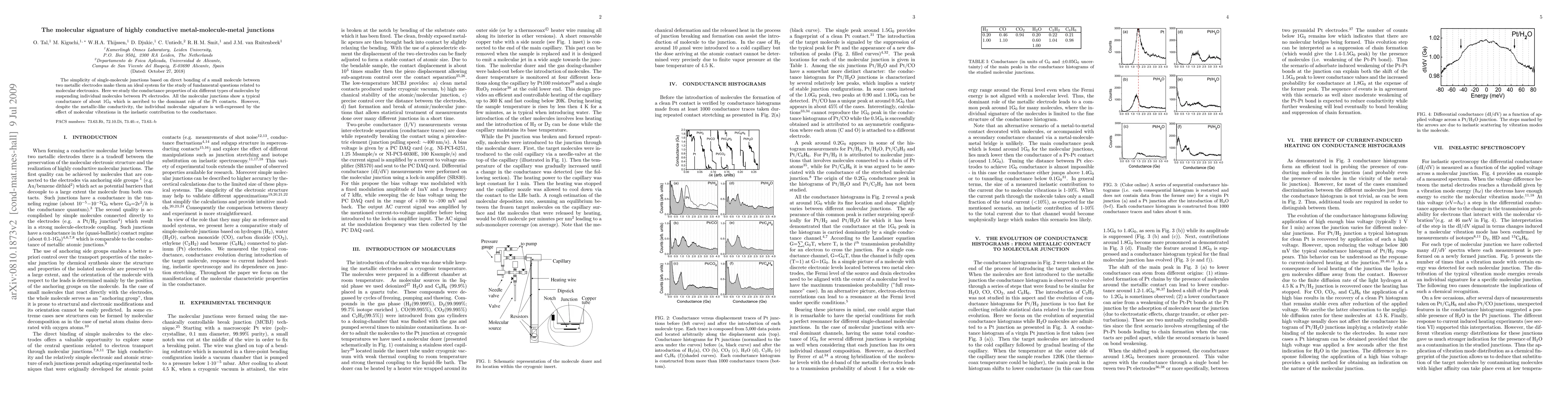 This study investigates the conductance properties of six different molecules between Pt electrodes, revealing a consistent conductance of about 1G0 due to the Pt contacts, while molecular signatures are discernible through the inelastic contribution of molecular vibrations.
