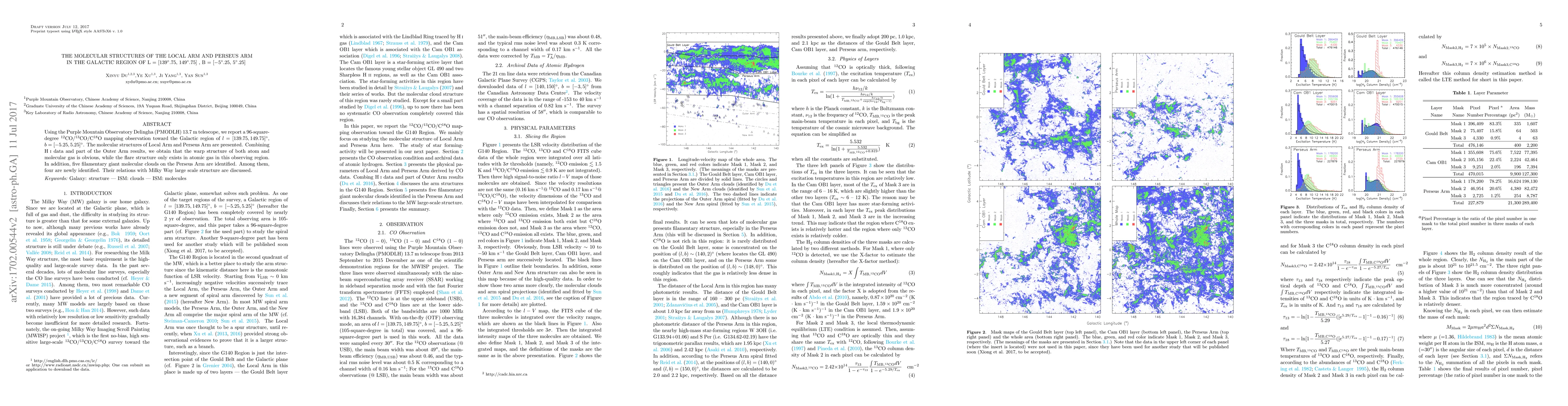 Using the Purple Mountain Observatory Delingha (PMODLH) 13.7 m telescope, we report a 96-square-degree 12CO/13CO/C18O mapping observation toward the Galactic region of l = [139.75, 149.75]$^\circ$, b = [-5.25, 5.25]$^\circ$. The molecular structure of the Local Arm and Perseus Arm are presented. Combining HI data and part of the Outer Arm results, we obtain that the warp structure of both atomic and molecular gas is obvious, while the flare structure only exists in atomic gas in this observing region. In addition, five filamentary giant molecular clouds on the Perseus Arm are identified. Among them, four are newly identified. Their relations with the Milky Way large-scale structure are discussed.
