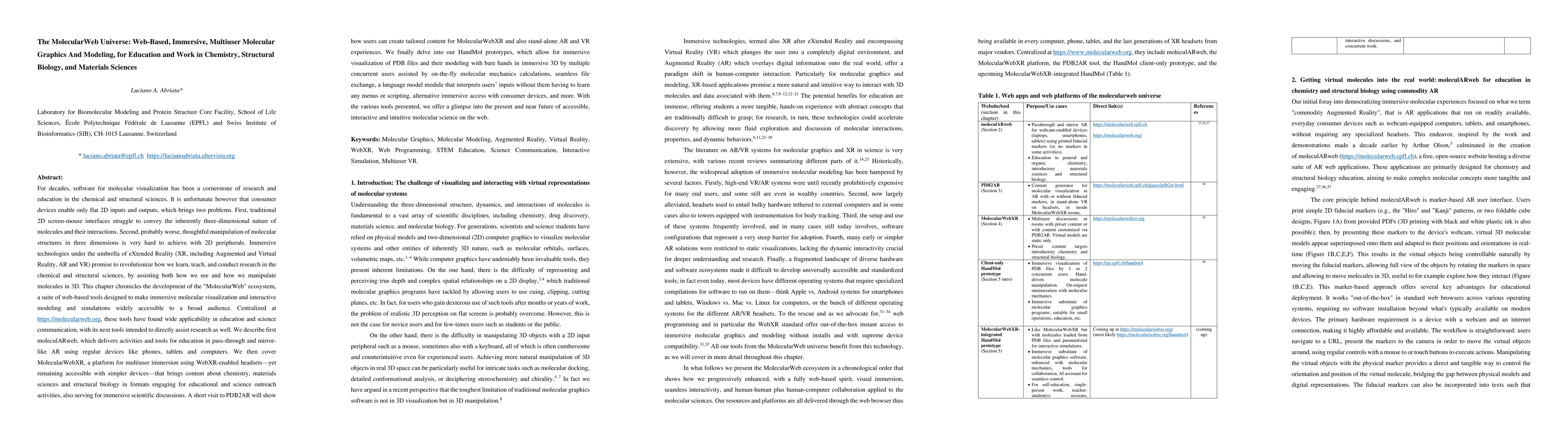 Molecular visualization software has long supported research and education in chemical and structural sciences, but consumer devices constrained to 2D inputs and outputs pose two major challenges: they poorly convey 3D nature, and 3D manipulation is very difficult. eXtended Reality (XR, including AR and VR) offers new ways to see and interact with molecules in three dimensions. This chapter presents the "MolecularWeb" ecosystem (https://molecularweb.org), a set of web-based tools for immersive visualization, modeling, and simulations, already widely used in education and science communication and now expanding toward research applications. We cover moleculARweb, which provides AR educational activities via phones, tablets, and computers; MolecularWebXR, a multiuser WebXR platform accessible from both headsets and simpler devices, supporting immersive education, outreach, and scientific discussion; and PDB2AR, which enables users to generate custom content for MolecularWebXR and standalone AR/VR. Finally, we introduce a prototype and an upcoming version of HandMol, our latest WebXR software which allows concurrent multiuser immersive visualization and modeling of molecules with bare hands supported by real-time molecular mechanics, natural language input via a language model, and access through both high-end headsets or consumer devices like smartphones and laptops. Together, these tools demonstrate the present and near-future of accessible, interactive molecular science on the web.