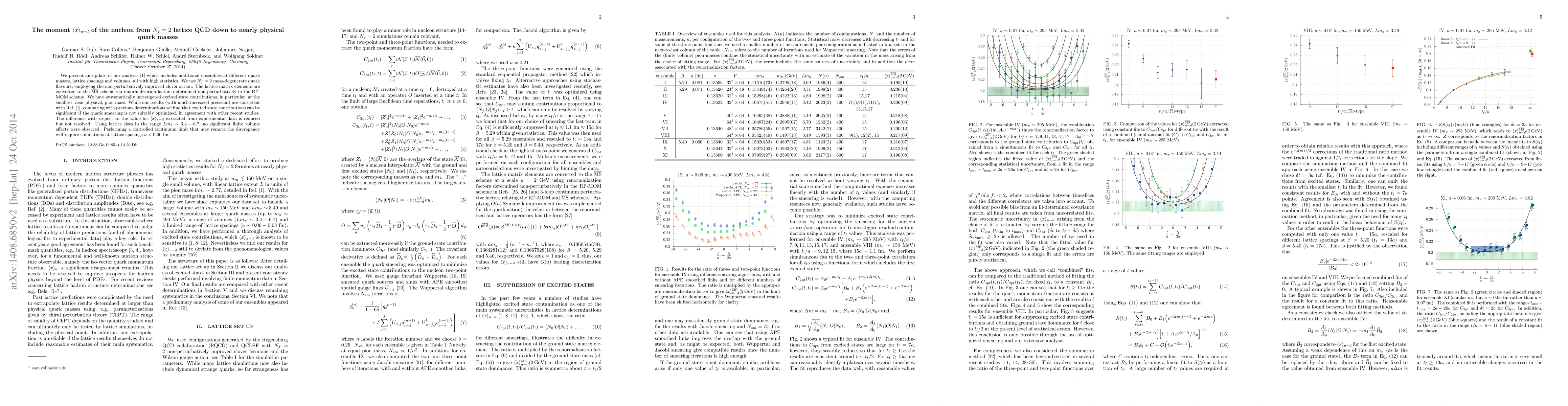 We present an update of our analysis [1] which includes additional ensembles at different quark masses, lattice spacings and volumes, all with high statistics. We use $N_f=2$ mass-degenerate quark flavours, employing the non-perturbatively improved clover action. The lattice matrix elements are converted to the $\overline{\rm MS}$ scheme via renormalization factors determined non-perturbatively in the RI$^\prime$-MOM scheme. We have systematically investigated excited state contributions, in particular, at the smallest, near physical, pion mass. While our results~(with much increased precision) are consistent with Ref.~[1], comparing with previous determinations we find that excited state contributions can be significant if the quark smearing is not suitably optimized, in agreement with other recent studies. The difference with respect to the value for $\langle x\rangle_{u-d}$ extracted from experimental data is reduced but not resolved. Using lattice sizes in the range $L m_\pi\sim 3.4-6.7$, no significant finite volume effects were observed. Performing a controlled continuum limit that may remove the discrepancy will require simulations at lattice spacings $a< 0.06$ fm.