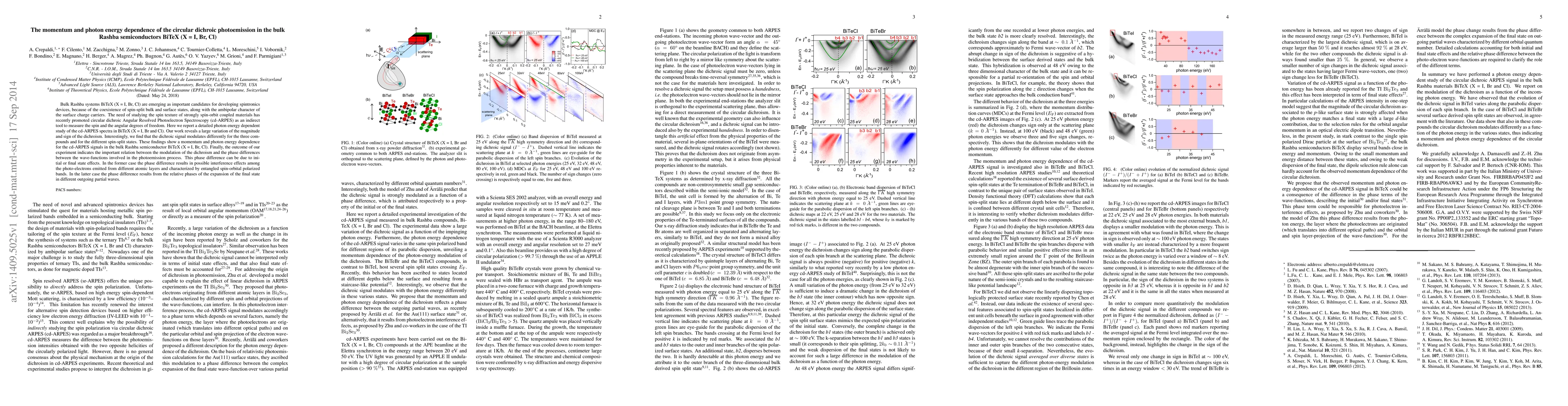 This study investigates the circular dichroic photoemission in bulk Rashba semiconductors BiTeX (X = I, Br, Cl) using cd-ARPES, revealing significant variations in dichroism magnitude and sign across different photon energies and momentum states. The findings highlight the dependence of the dichroic signal on both photon energy and momentum, and suggest a connection between dichroism modulation and phase differences in the photoemission process.