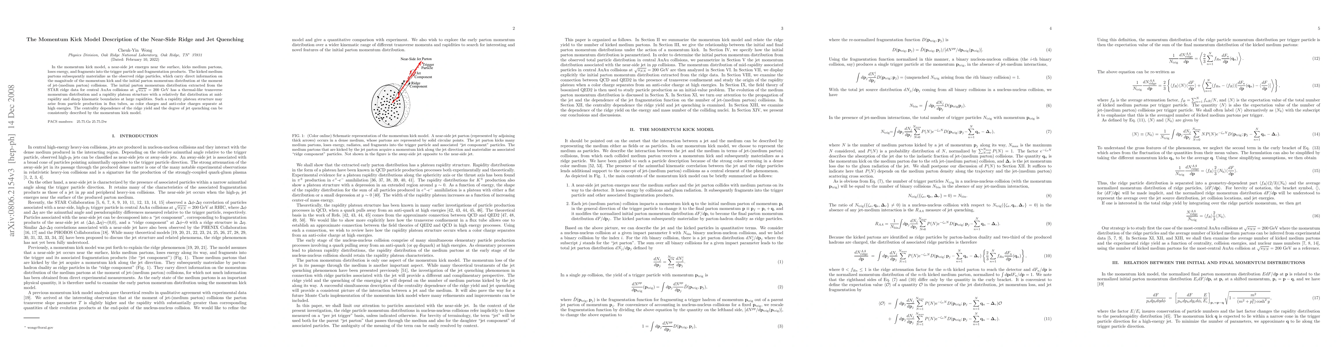 The momentum kick model provides a novel approach to describe the near-side ridge and jet quenching phenomena, offering a framework for understanding the early-stage dynamics of heavy-ion collisions.