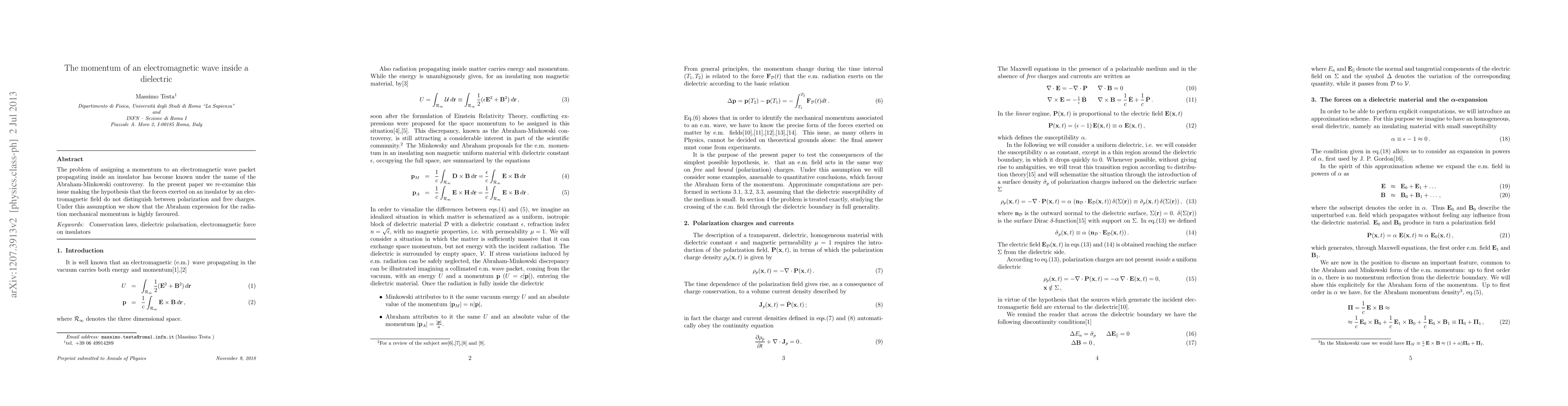 The problem of assigning a momentum to an electromagnetic wave packet propagating inside an insulator has become known under the name of the Abraham-Minkowski controversy. In the present paper we re-examine the question, first through a power expansion in the polarizability of the medium and assuming the simplest and most natural choice for the force exerted on a dielectric material by an electromagnetic field. It is shown that the Abraham expression is highly favoured. We then show the complete generality of these results.