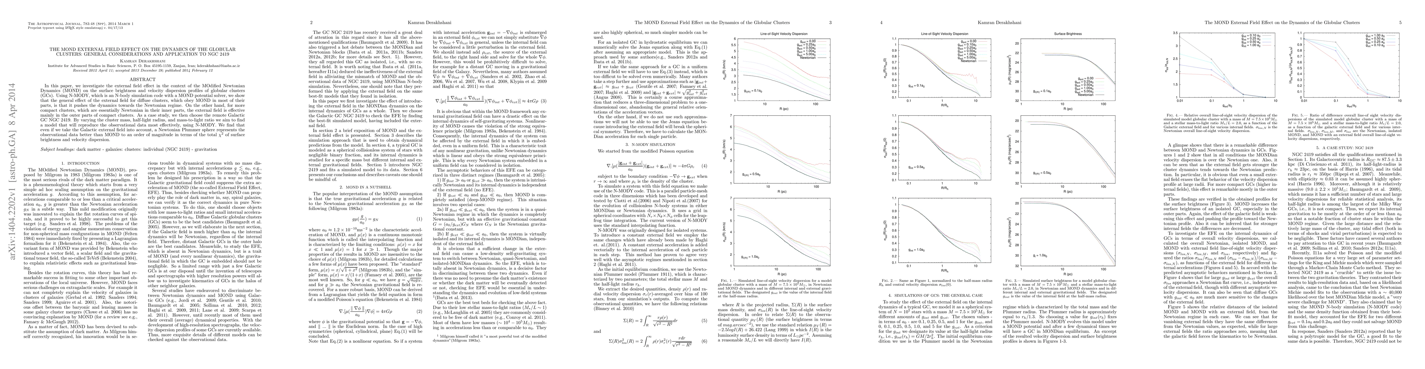 This paper explores the MOND external field effect on globular clusters' dynamics, demonstrating that it shifts diffuse clusters towards Newtonian behavior while affecting compact clusters mainly in their outer regions. For NGC 2419, simulations show that Newtonian models better fit observational data than MOND, despite considering the Galactic external field.