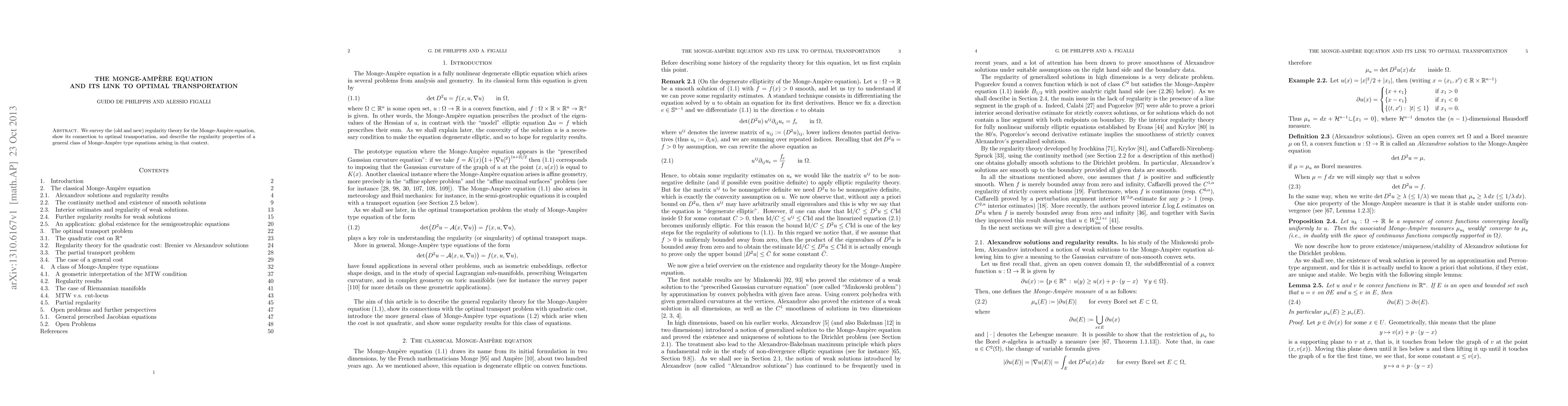 This paper surveys the regularity theory for the Monge-Ampère equation, highlighting its connection to optimal transportation and detailing the regularity properties of a broad class of Monge-Ampère type equations in that context.