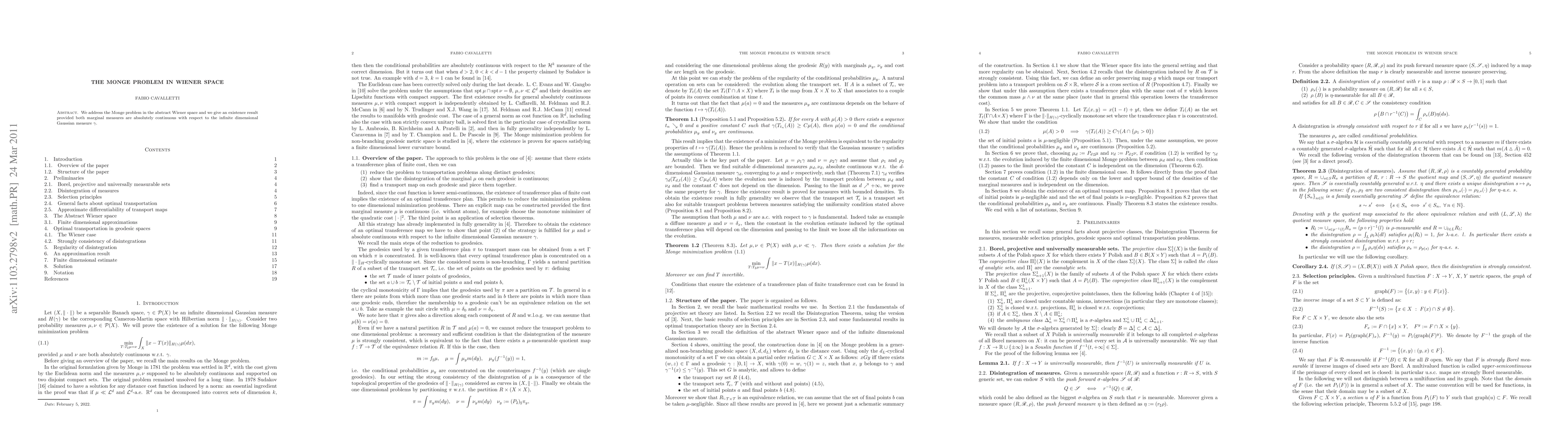 We address the Monge problem in the abstract Wiener space and we give an existence result provided both marginal measures are absolutely continuous with respect to the infinite dimensional Gaussian measure {\gamma}.