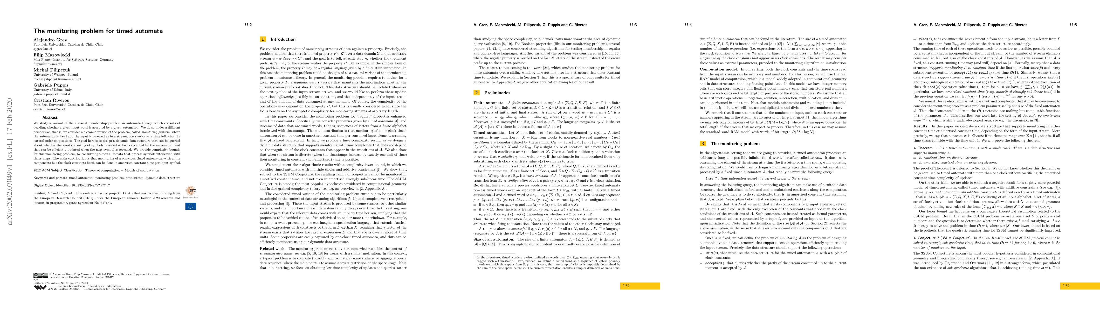 The paper presents a data structure that efficiently monitors timed automata in a dynamic setting, ensuring amortized constant time complexity for one-clock timed automata.
