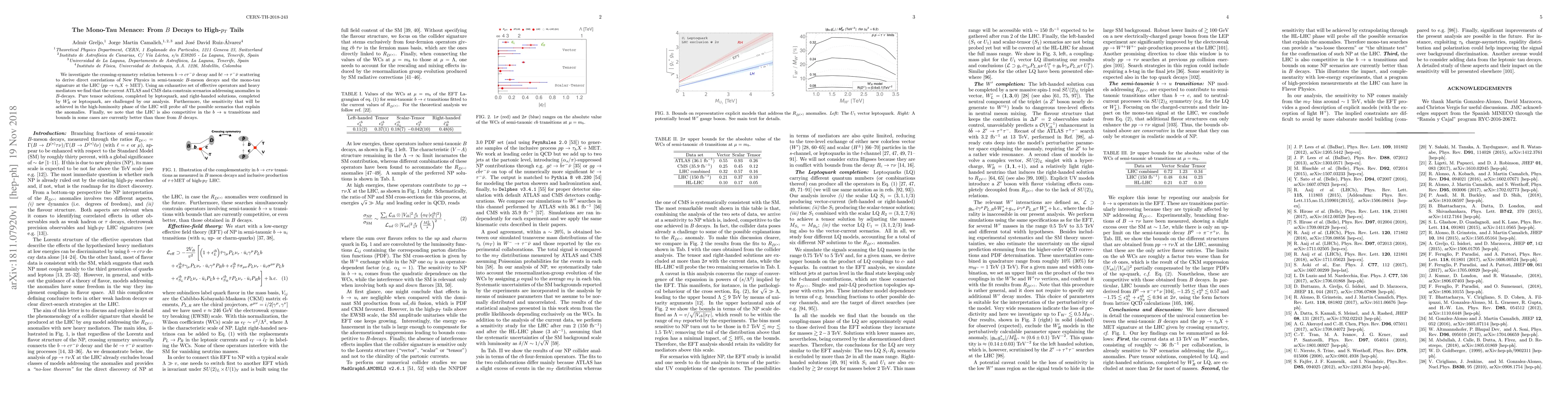 We investigate the crossing-symmetry relation between $b\to c\tau^-\bar\nu$ decay and $b\bar c\to \tau^-\bar\nu$ scattering to derive direct correlations of New Physics in semi-tauonic $B$-meson decays and the mono-tau signature at the LHC ($pp\to\tau_h X$ + MET). Using an exhaustive set of effective operators and heavy mediators we find that the current ATLAS and CMS data constrain scenarios addressing anomalies in $B$-decays. Pure tensor solutions, completed by leptoquark, and right-handed solutions, completed by $W^\prime_R$ or leptoquark, are challenged by our analysis. Furthermore, the sensitivity that will be achieved in the high-luminosity phase of the LHC will probe $all$ the possible scenarios that explain the anomalies. Finally, we note that the LHC is also competitive in the $b\to u$ transitions and bounds in some cases are currently better than those from $B$ decays.