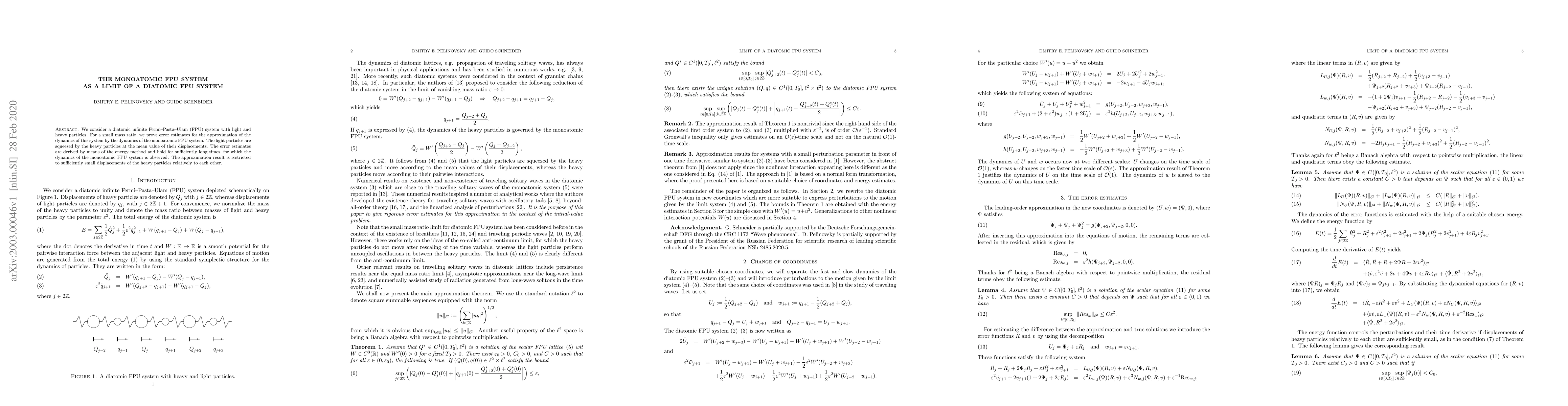 This paper proves error estimates for approximating the dynamics of a diatomic FPU system with a small mass ratio by the dynamics of a monoatomic FPU system, showing that light particles are influenced by heavy particles' displacements. The approximation holds for sufficiently long times and small displacements of the heavy particles.