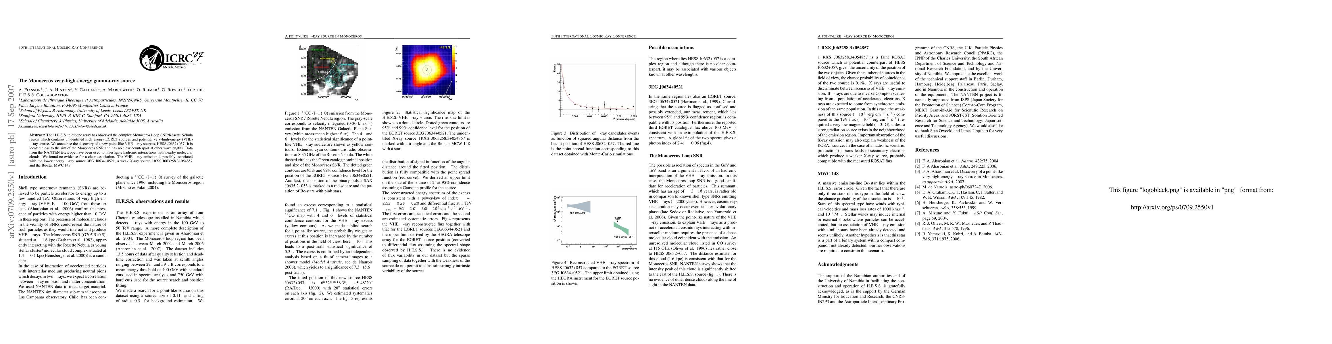 The H.E.S.S. telescope array discovered a new very-high-energy (VHE) gamma-ray source, HESS J0632+057, near the Monoceros Loop SNR, with no clear counterpart at other wavelengths, and no clear association with nearby molecular clouds. The VHE emission may relate to the lower energy gamma-ray source 3EG J0634+0521 and the Be-star MWC 148.